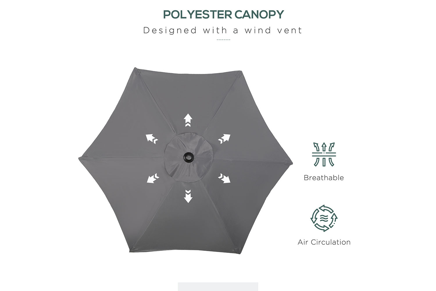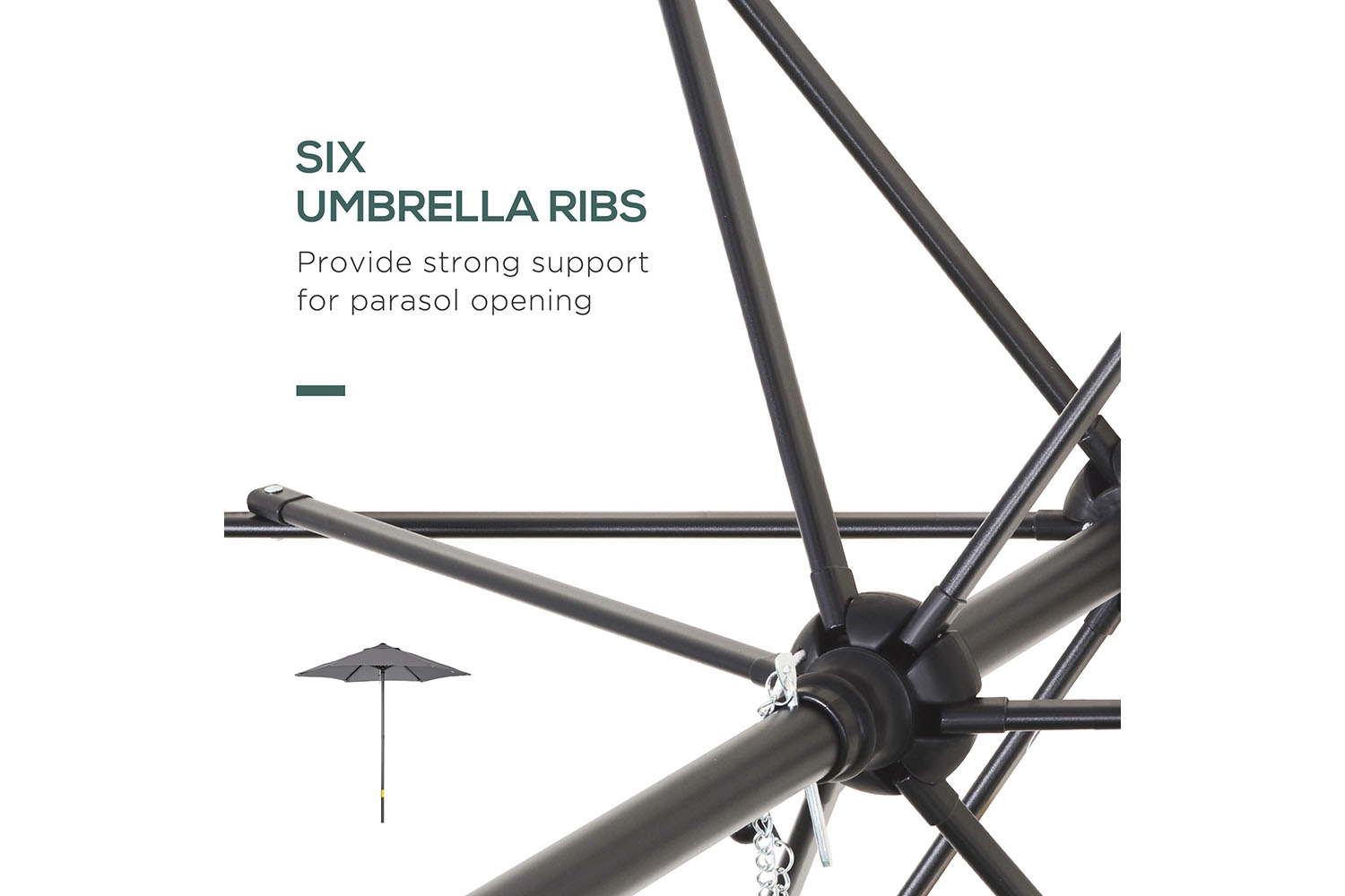 The Outsunny umbrella for garden table is a stylish, classic design. It brings beauty into your garden and outdoors whilst creating protective shade. The aluminium frame ensures a strong core, with six ribs connected for extra support against the wind. The push-open operation means the sun parasol is easy to open - you'll be shaded so quickly into place. It's just as easy to close down too. Pair with our Outsunny parasol bases for the complete package this summer and beyond.