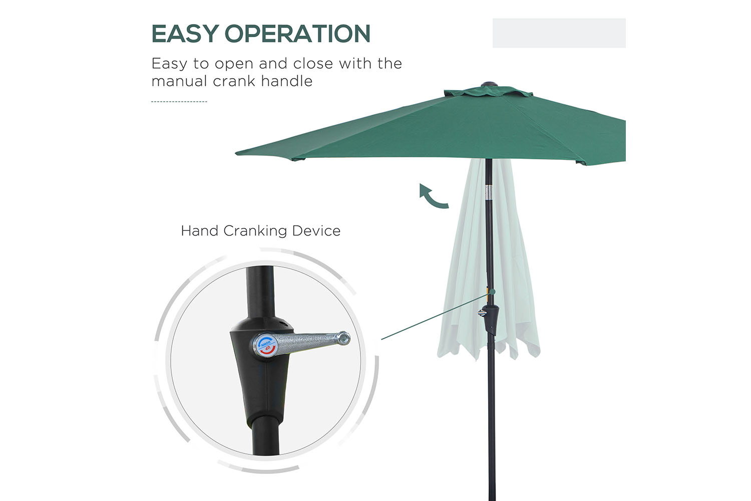 - Crank operation makes it easy to open and close the umbrella