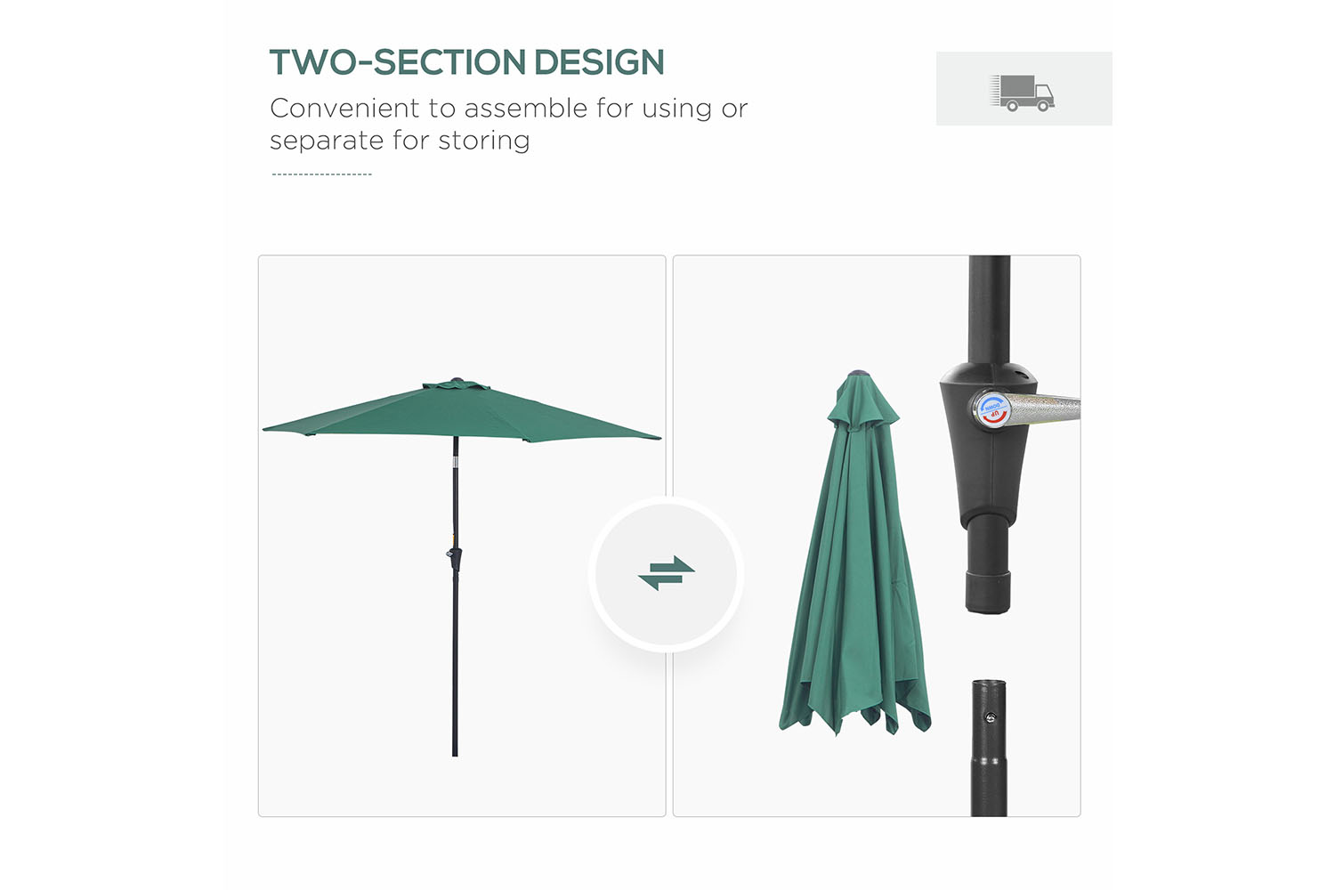 - 2.7M diameter canopy is ideal for shading 4 to 6 chairs, suitable for garden, backyard, deck and more