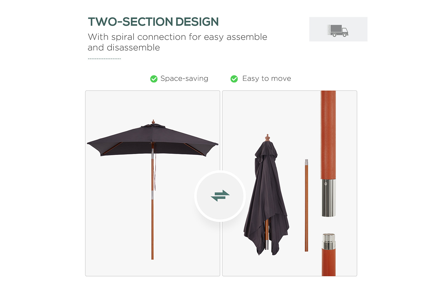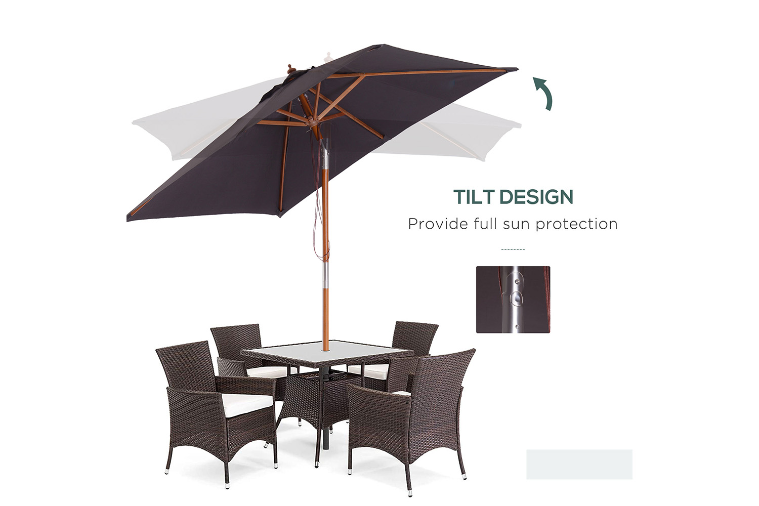 - Tilt mechanism to move the umbrella to the direction you require