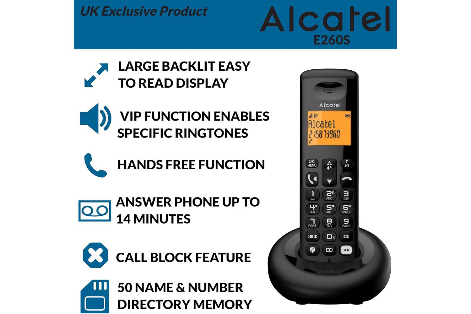 Enjoy convenience and flexibility with the Alcatel E260 Trio Cordless Phone in sleek black. Representing a new era in home communications, this device offers an impressive array of features designed to bring comfort and ease to your daily communication needs.