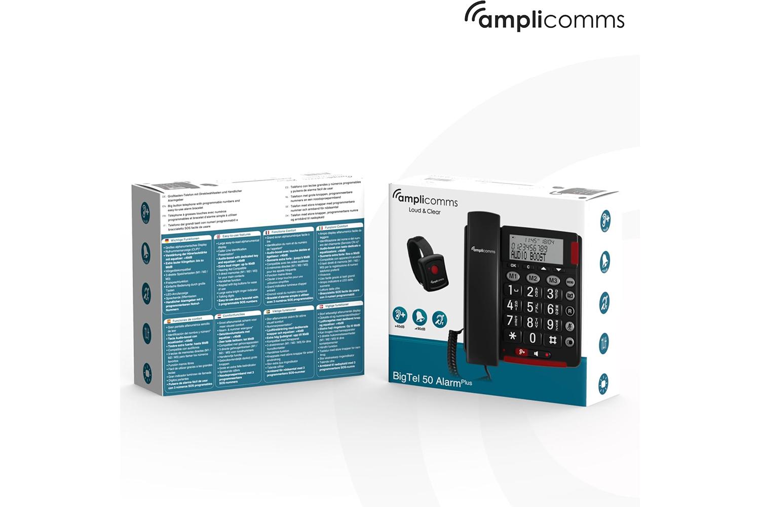 This feature-rich AMPLICOMMS BigTel 50 Plus brings you top-notch sound quality and amplified volume, making your daily communication hurdles disappear. Dealing with hearing impairment is no longer a strain, thanks to an impressive +40dB volume boost handset, delivering extra loud and clear sound, ensuring fluid conversations. Remarkably, the ringtones run full tilt to ensure that no call goes unanswered with its powerful 90dB ringers.