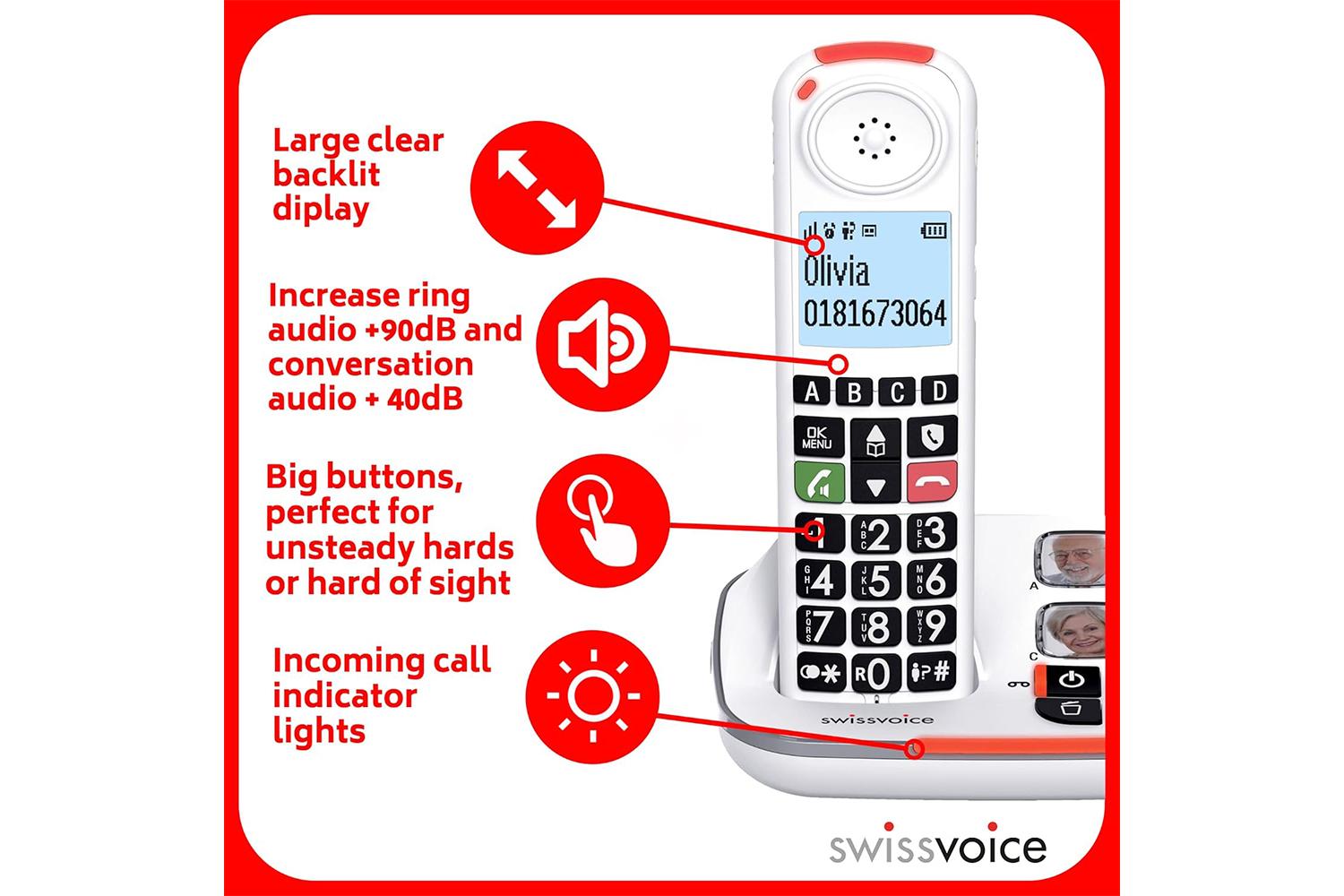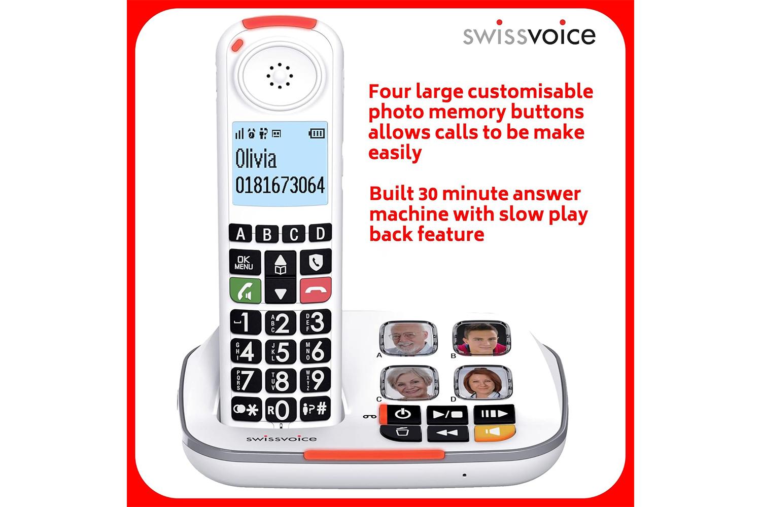 Alleviating anxieties such as missed calls or forgetful moments, this cordless phone offers four direct memory buttons with respective photo dedications. Whether it's your favourite contact, immediate family or your trusted GP, reaching out to them is as simple as the press of a button. In stark contrast to regular phone systems, the Swissvoice Cordless Phone empowers you with an increased level of security and ease.