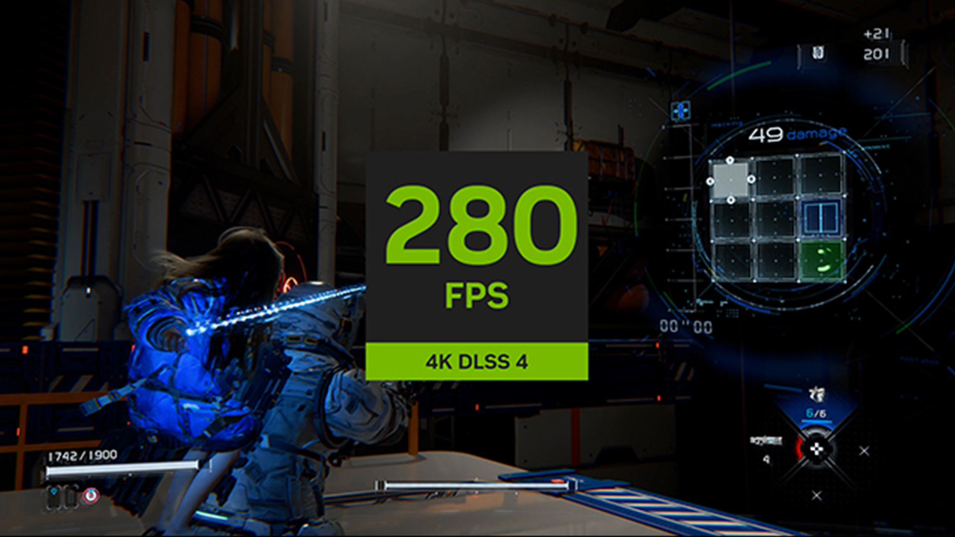 Powered by GeForce RTX 50 Series, DLSS 4 with Multi Frame Generation boosts FPS, reduces latency, and improves image quality, enhancing your PRAGMATA experience.