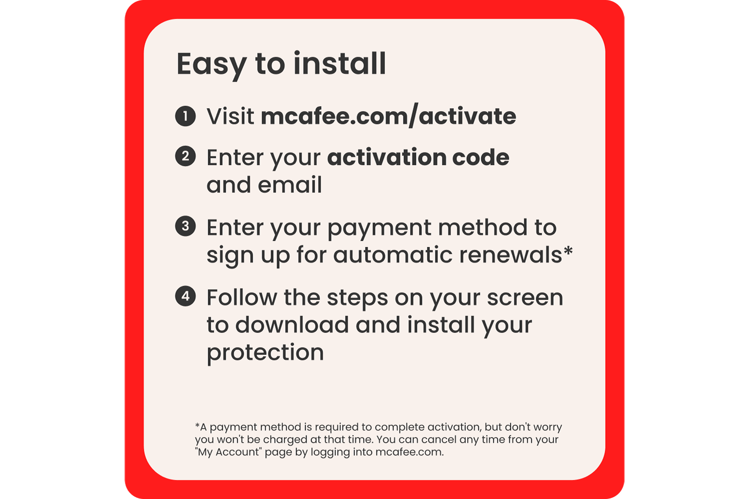 You will receive a reminder 30 days before renewal. You may cancel or opt‑out anytime from your “My Account” page by logging into mcafee.com.