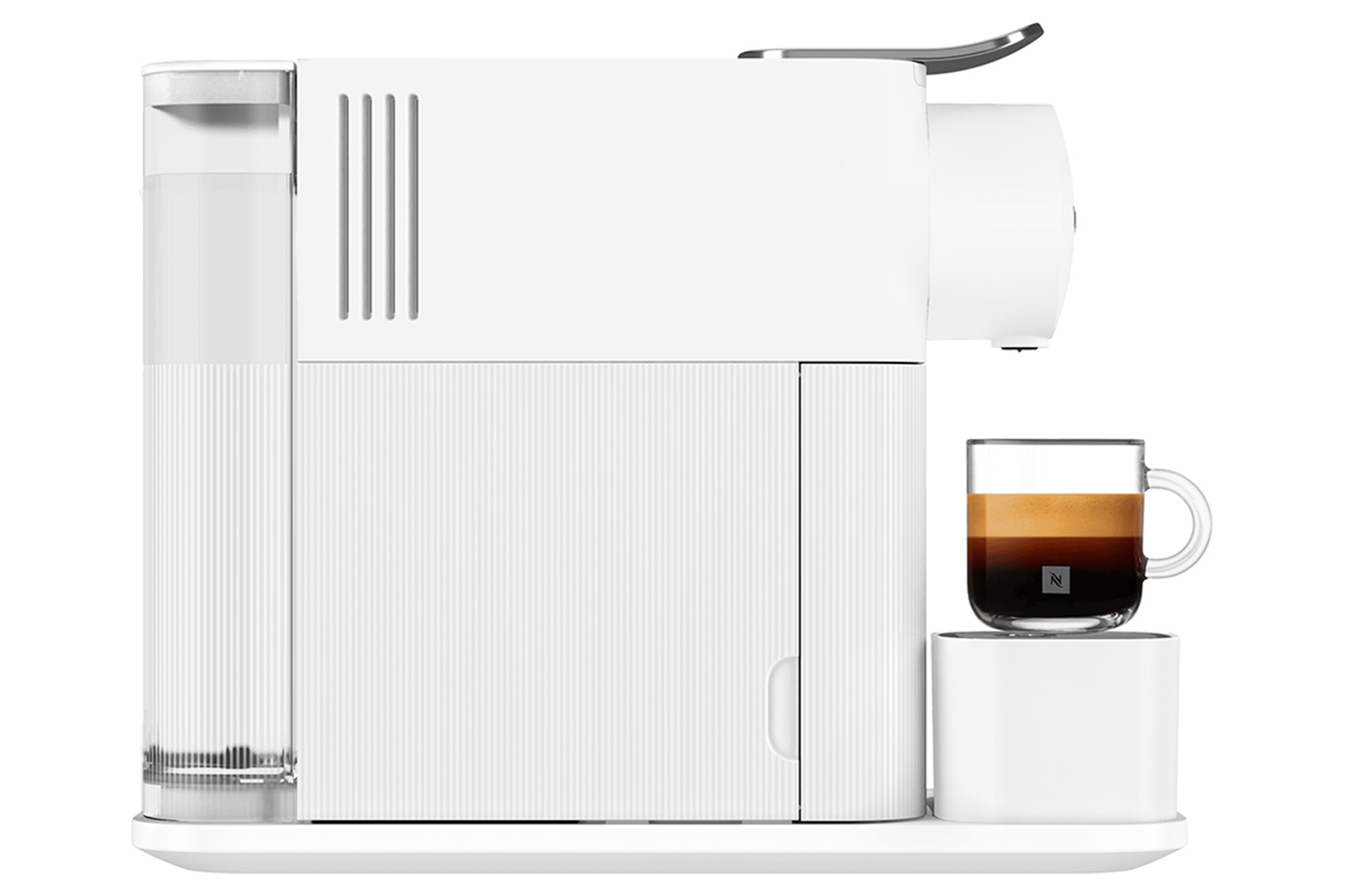 Lattissima One features a premium and compact design with quality finishing and materials, including the chrome lever, subtle gloss finish and matt line patterns.