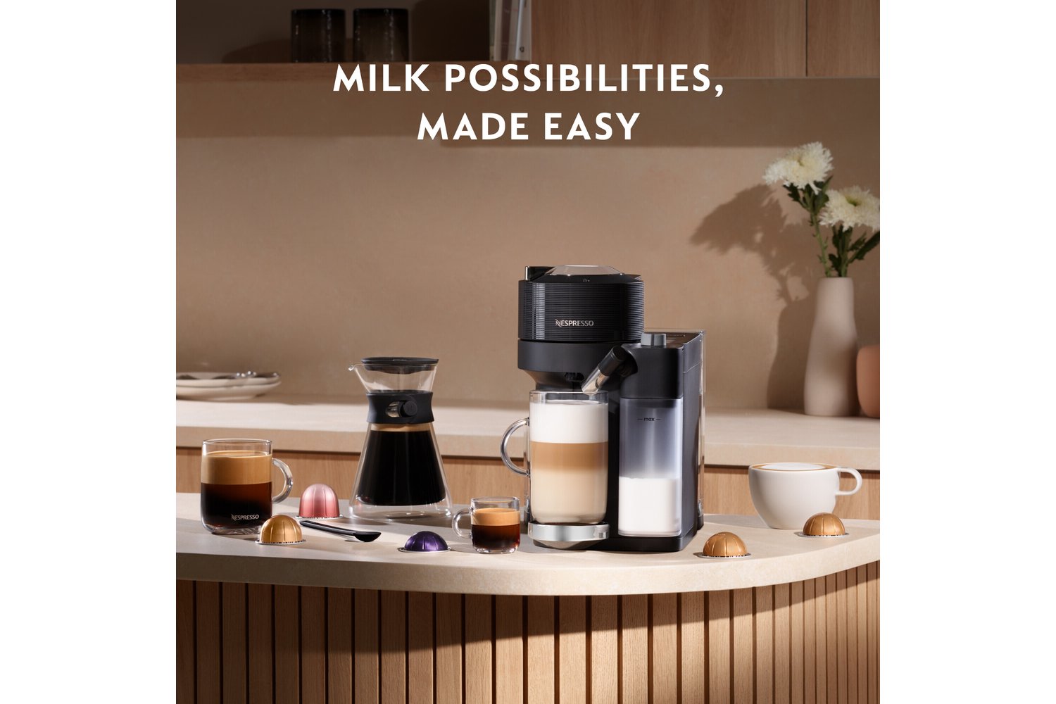 - The Nespresso Vertuo Lattissima offers a full range of coffee pods, from an intense Espresso and Carafe to Latte and Cappuccino, all at the touch of a button and with a smooth crema