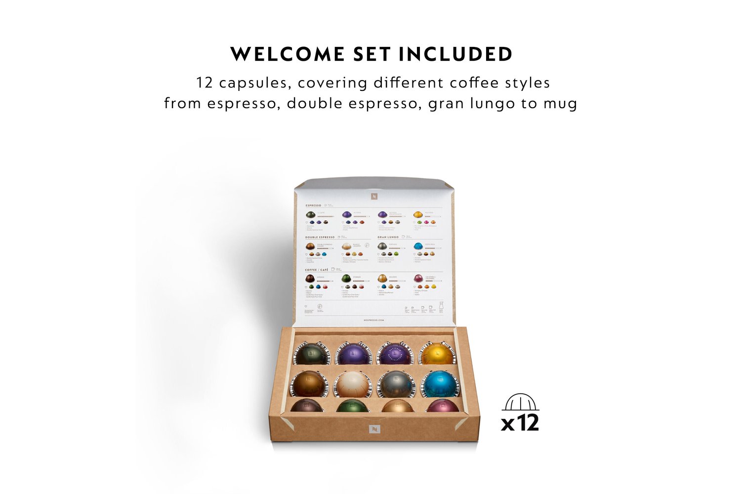 One Nespresso coffee machine for 6 black coffee sizes: Espresso, Double Espresso, Gran Lungo, Mug/Coffee, Alto and Carafe via 4 different coffee pod sizes.