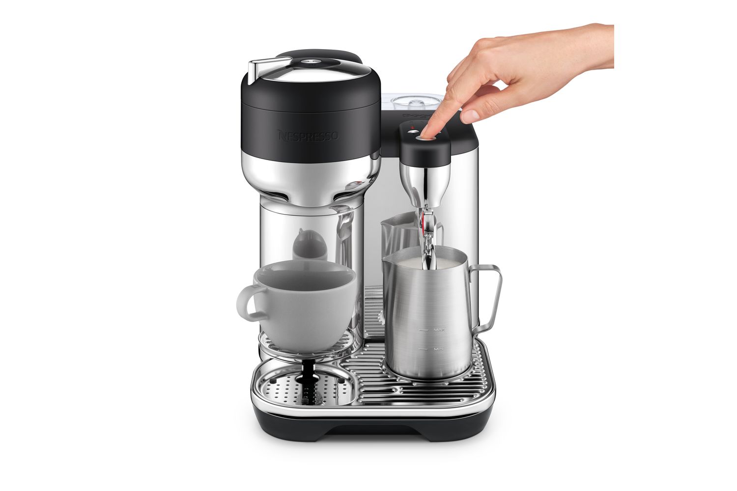 The game-changing Intelligent Brewing Technology, combined with an auto-reading feature for each unique Nespresso capsule code, guarantees the Vertex Creatista brews your espresso or lungo to unparalleled perfection. It even holds the potential to double click for a shortened extraction, producing the ideal foundation for milk coffee recipes.