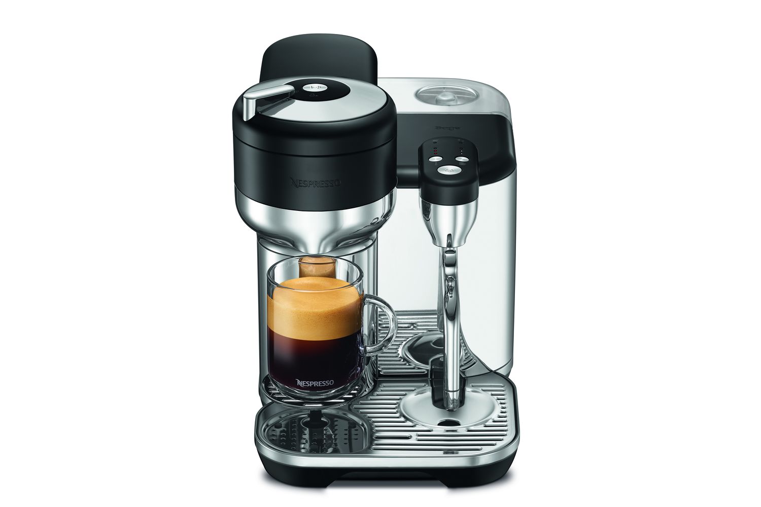 From our Aeroccino3 black milk frother, your coffee maker's perfect sidekick, to the convenient travel mug brewing function, it's these considerate measures that sets our product apart. Polishing off with a small cup support seamlessly integrating into the drip tray when inconspicuous, the Sage the Vertuo Creatista is a stylish addition to your kitchen decor.