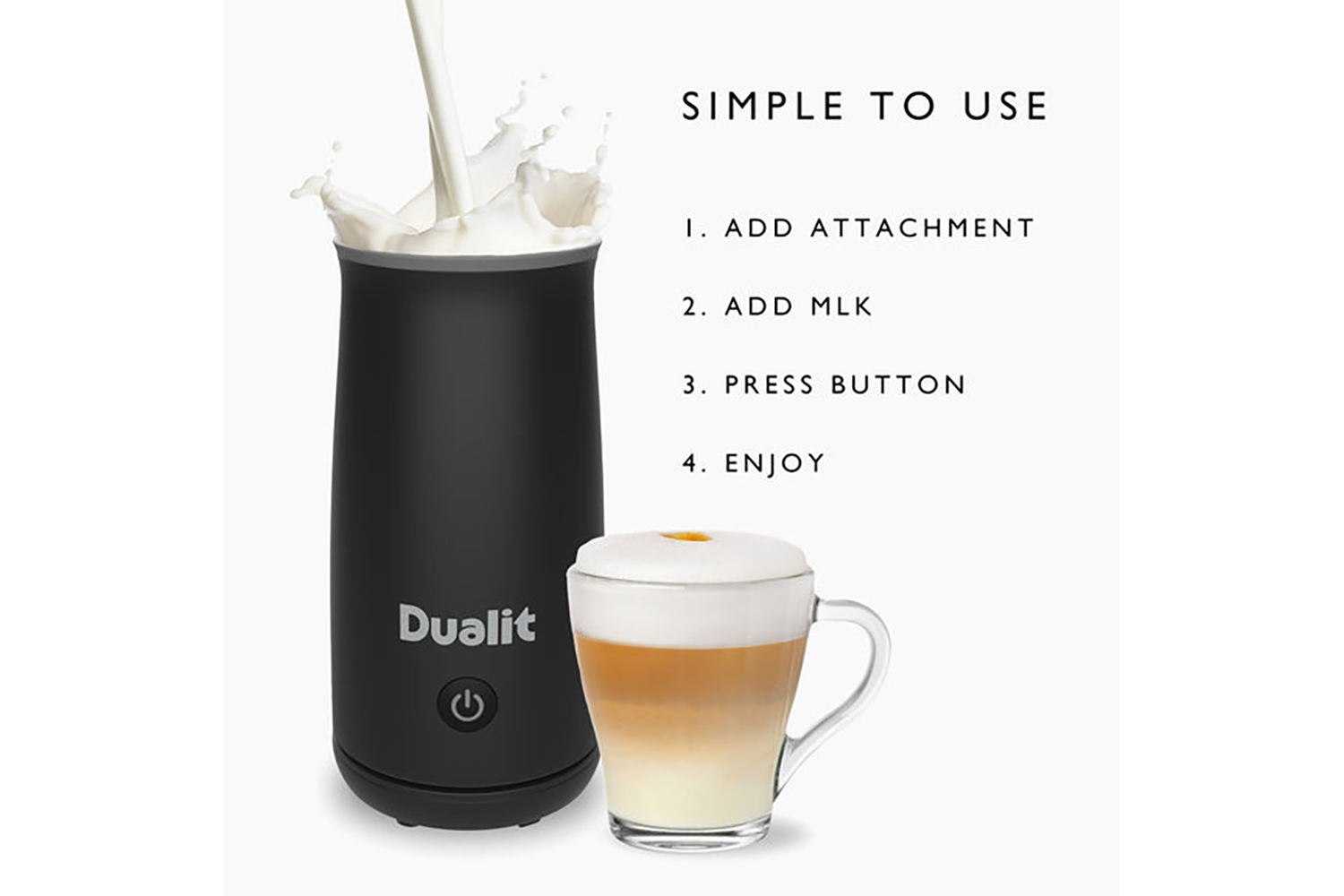 - Creates perfectly texturised milk