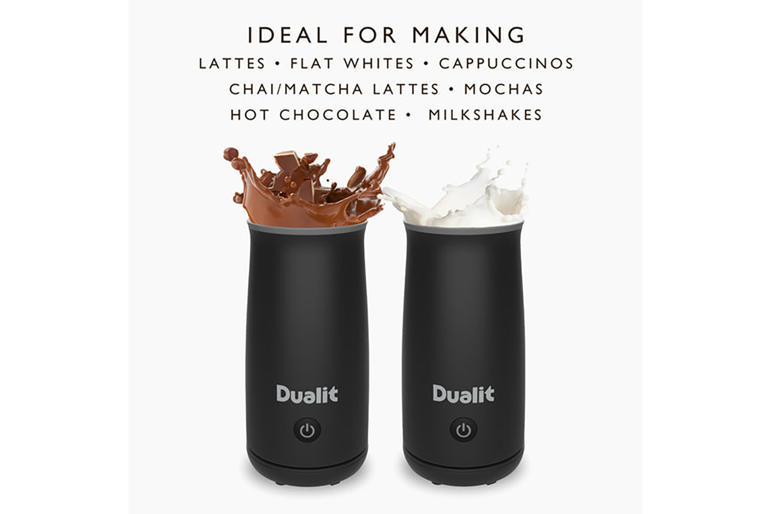 Discover the effortless one touch control of Dualit Handheld Milk Frother. Seamlessly creating a luxurious beverage has never been easier.