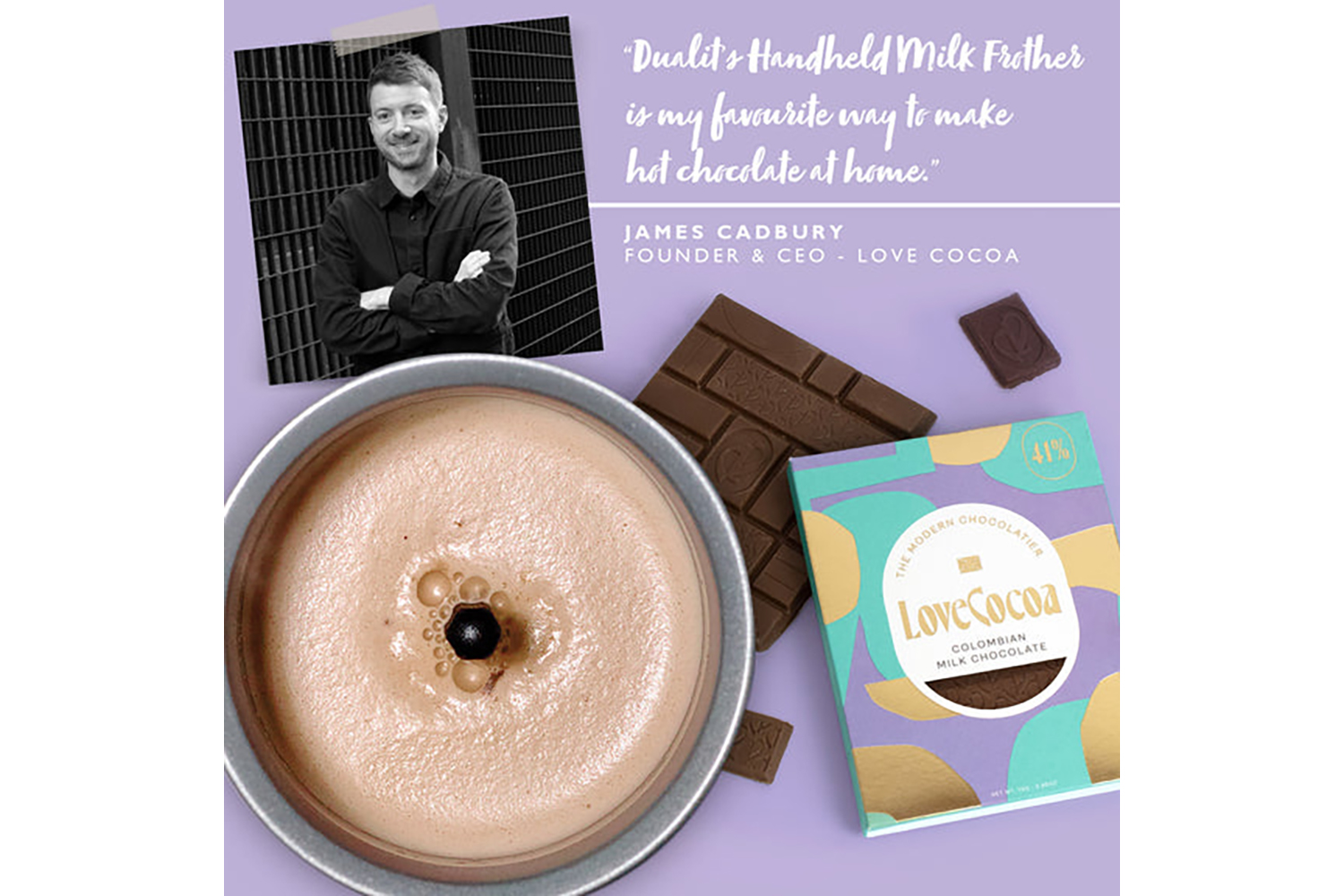 No need to prepare or buy a special brand, just break-up a few squares of your favourite chocolate and add to the frother, for the dreamiest, frothiest hot chocolate. Works equally well with chocolate flakes, buttons or powder.