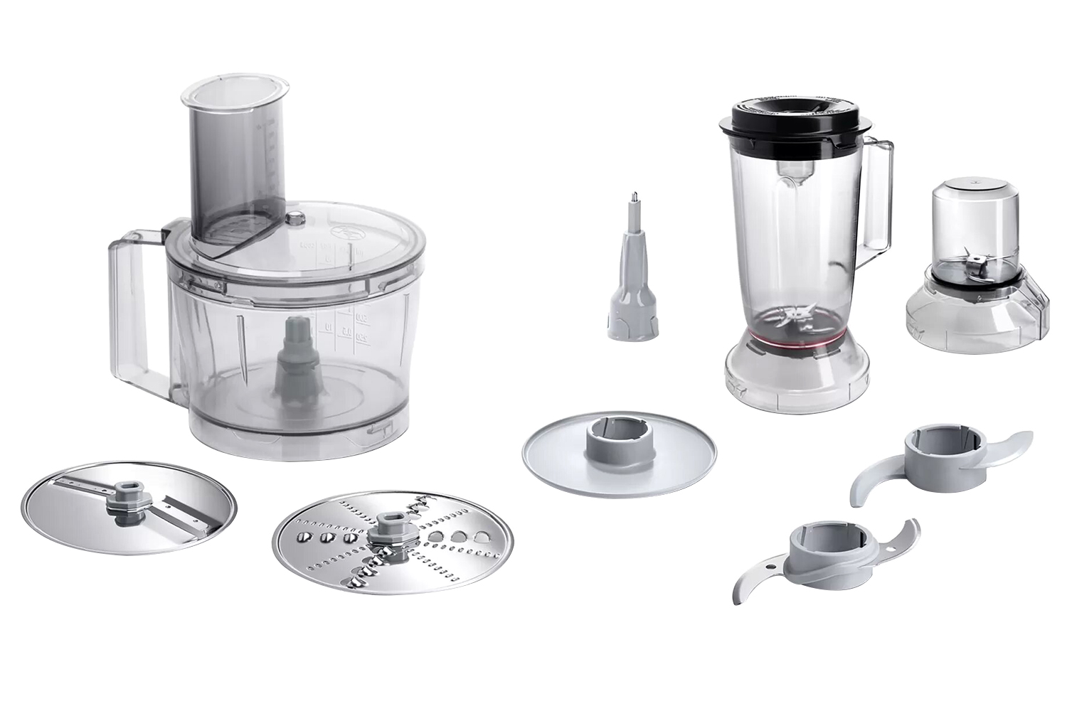 Absolutely great food processor. Great size overall. Comes with all fittings needed and with a handy smaller blender to grind coffee and herbs etc !