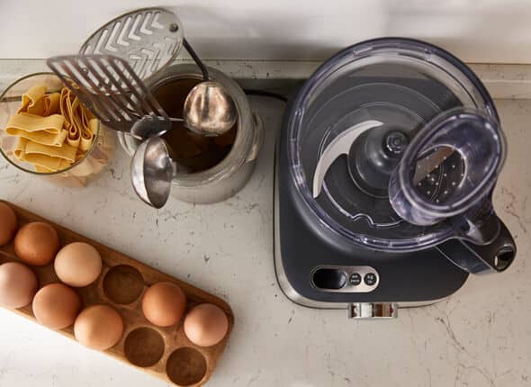 The widest variety of high quality accessories on a compact food processor, for even better performance*. There’s a glass blender, multi mill, integrated scales and dual metal whisk.