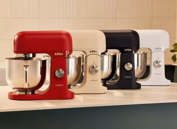 Express your individual flair, your love of design and your passion for baking with kMix. Choose from Bold Red, Calm Cream, Sleek Black or Pure White, complimented by glossy finishes, matt tones and stainless steel for the ultimate kitchen style statement.