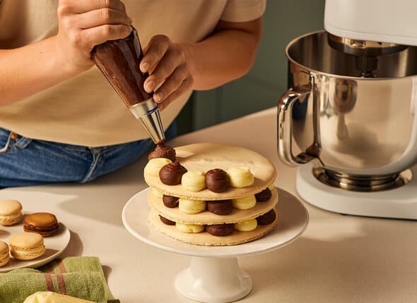 Express your individual flair, your love of design and your passion for baking with kMix. Choose from Bold Red, Calm Cream, Sleek Black or Pure White, complimented by glossy finishes, matt tones and stainless steel for the ultimate kitchen style statement.