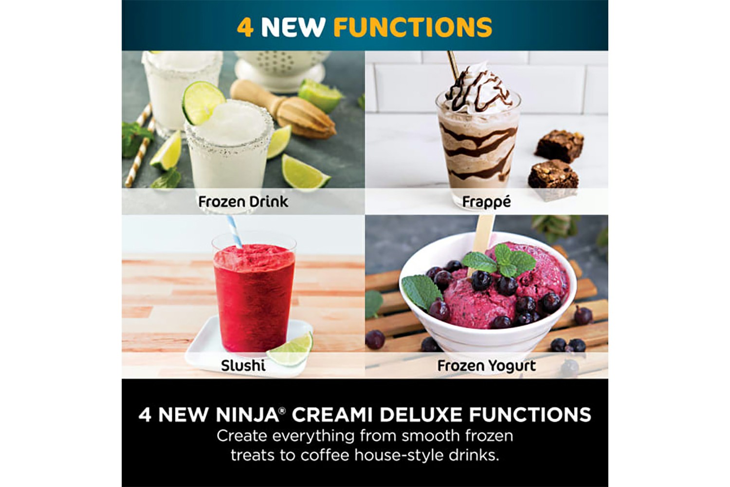 With the Ninja CREAMi Deluxe, you can turn almost anything into ice cream and so much more. Make CREAMi classics like ice cream, sorbet, gelato, and mix-in masterpieces. And now, make a refreshing fruit slush, coffee frappe, frozen yoghurt or a frozen drink, right at home.