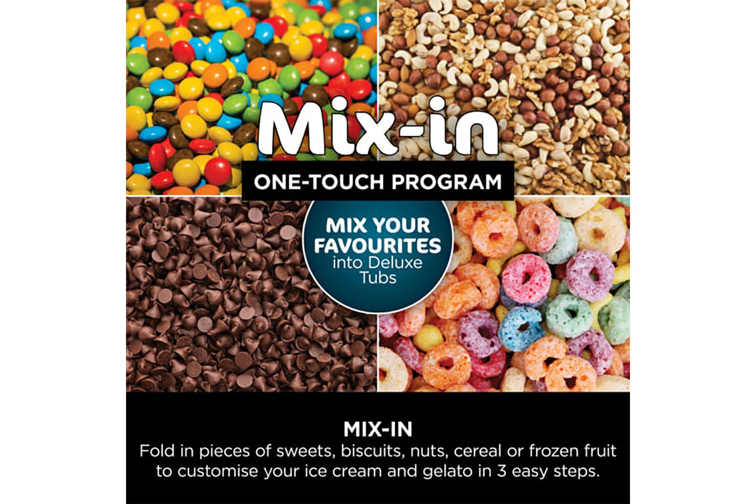 • Mix-Ins: Take your freshly made creation to the next level. Mix-In functions allow you to add nuts, chocolate and more to ice cream, milkshakes and more