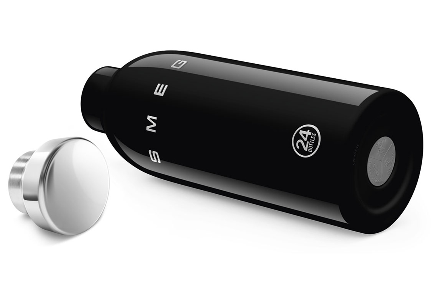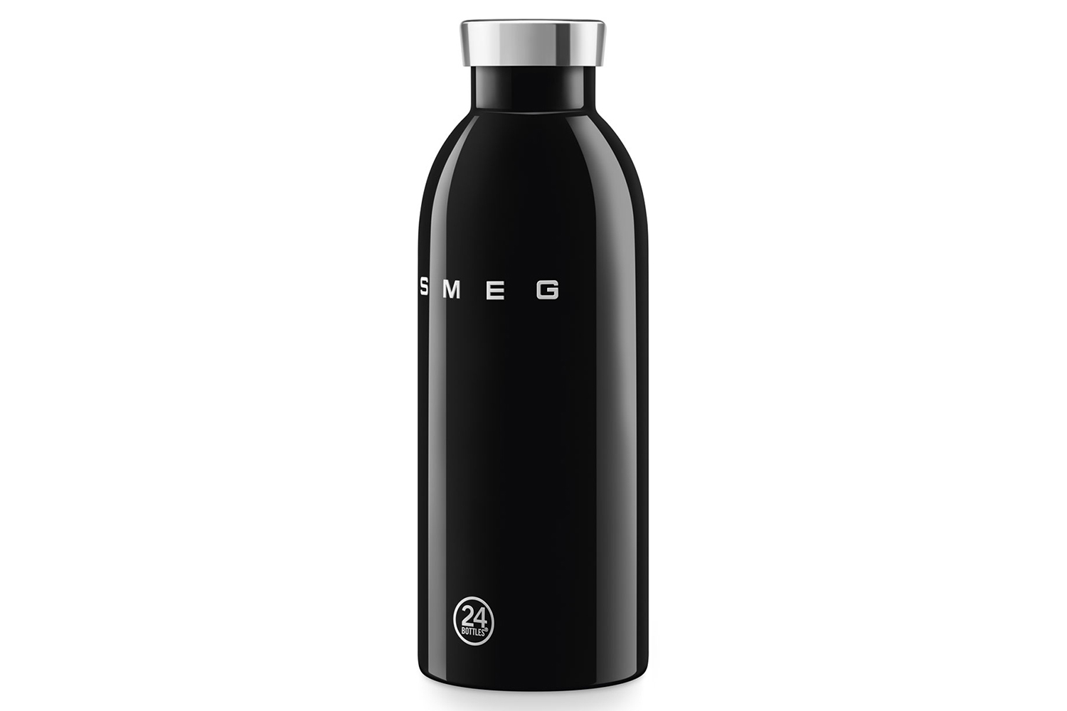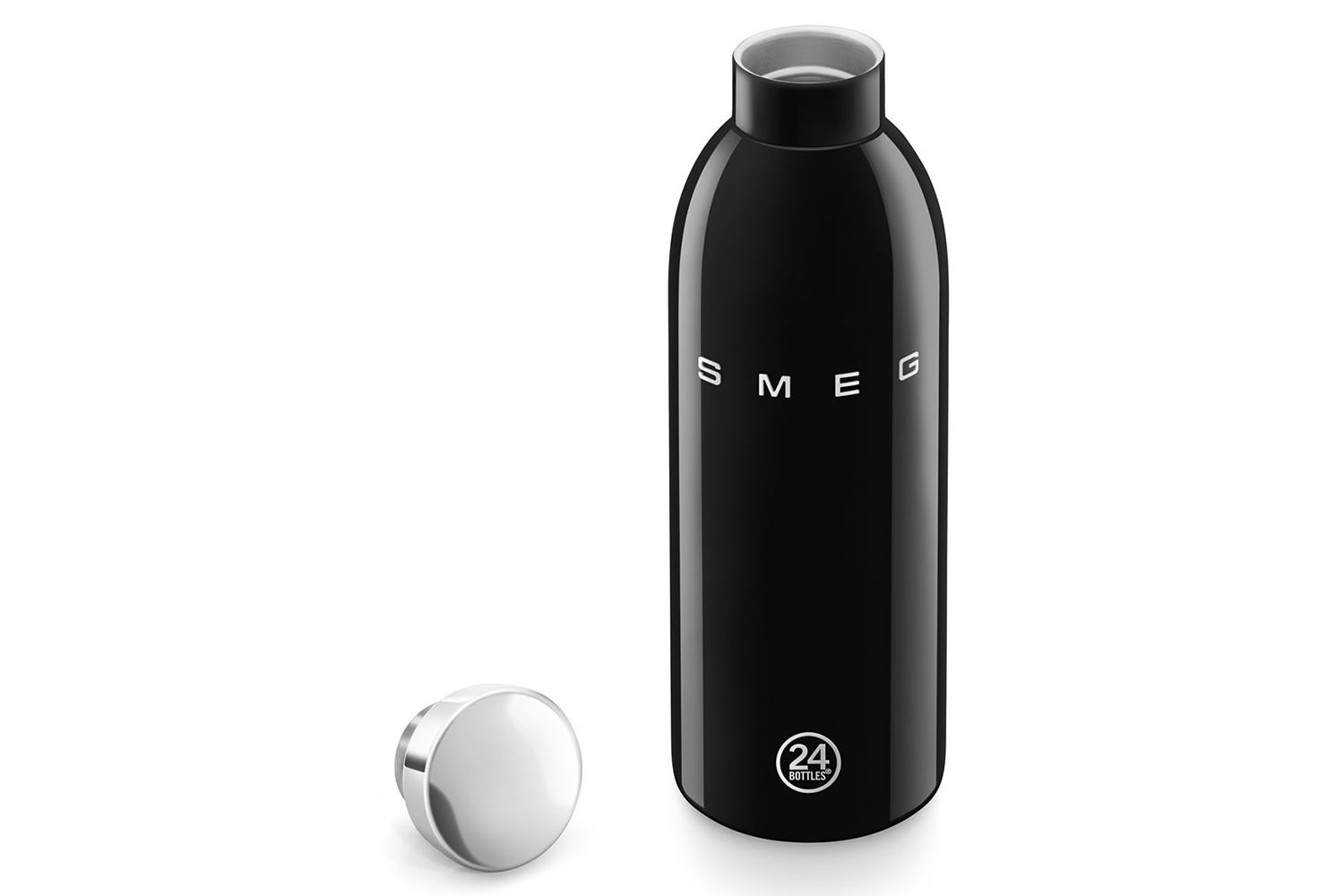 Clima Bottle is the result of a collaboration between Smeg and 24Bottles, combining iconic design with functionality. Featuring a smooth, glossy finish and an embossed logo, it recalls Smeg's 1950s style while keeping drinks hot or cold throughout the day.