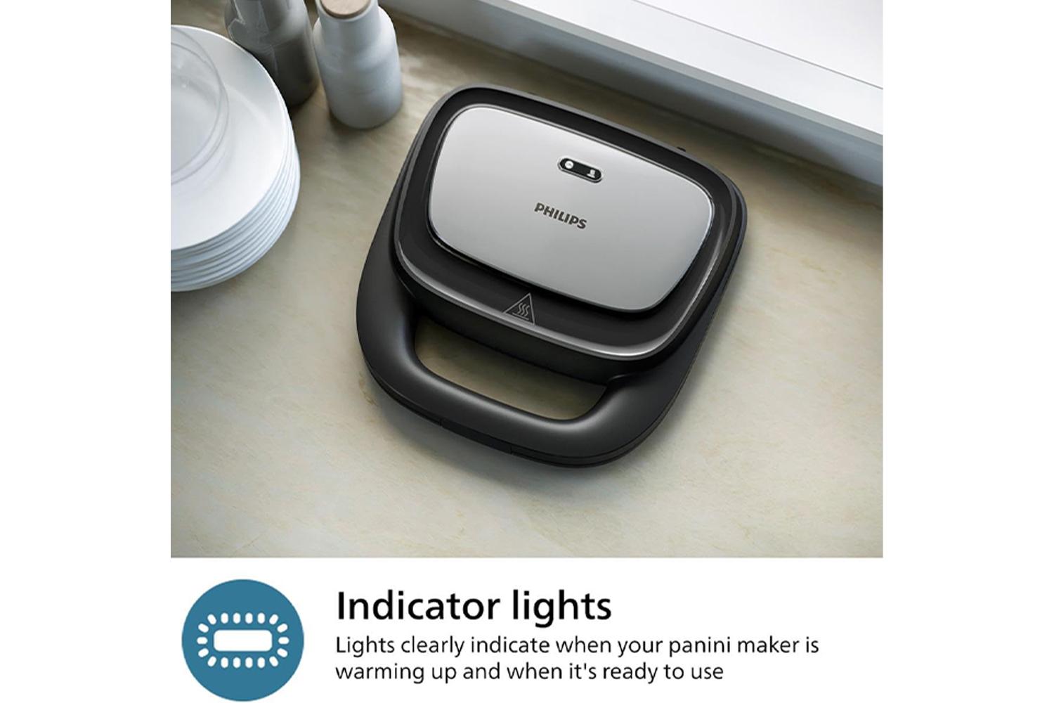 Experience regular mouthwatering breakfasts without taking much of your time, with the Philips 750W Black Silver Panini, Waffle and Sandwich Maker. Making toasts doesn’t have to be a chore with the trendiest home kitchen equipment. Enjoy crispy outside and melted inside, perfect for any time of the day. It’s versatile, convenient, powerful - making it a must-have addition to your kitchen.