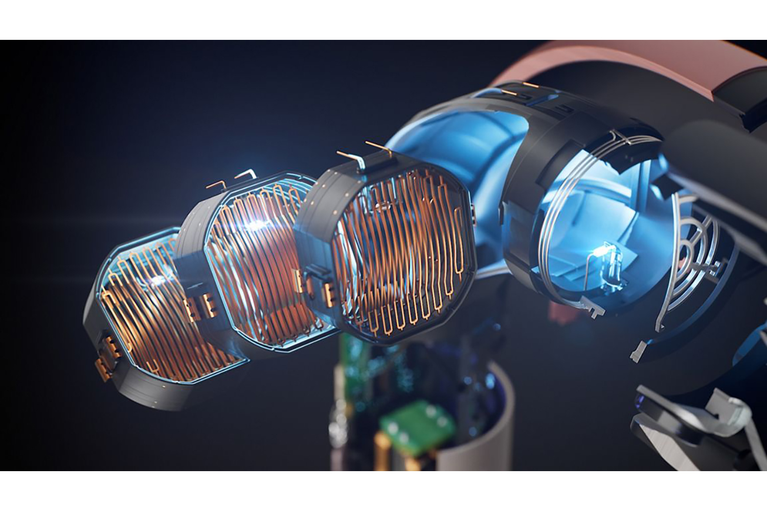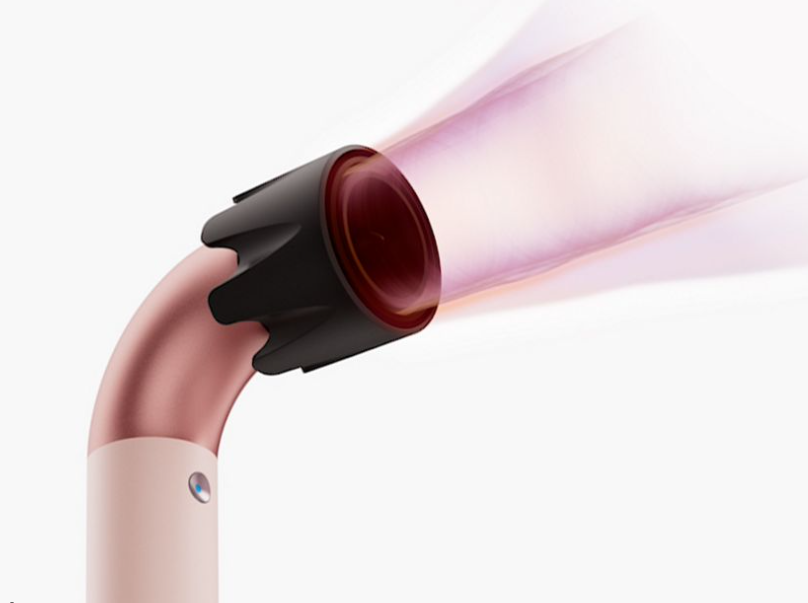 Dyson most powerful [1] and fastest drying – the Dyson Hyperdymium motor produces high-pressure airflow. Spinning at up to 110,000rpm, forming a jet of controlled air. Propelled through the ultra-responsive Streamlined flow heater, 10 heater foils are placed in the curve of the device for air to travel through.