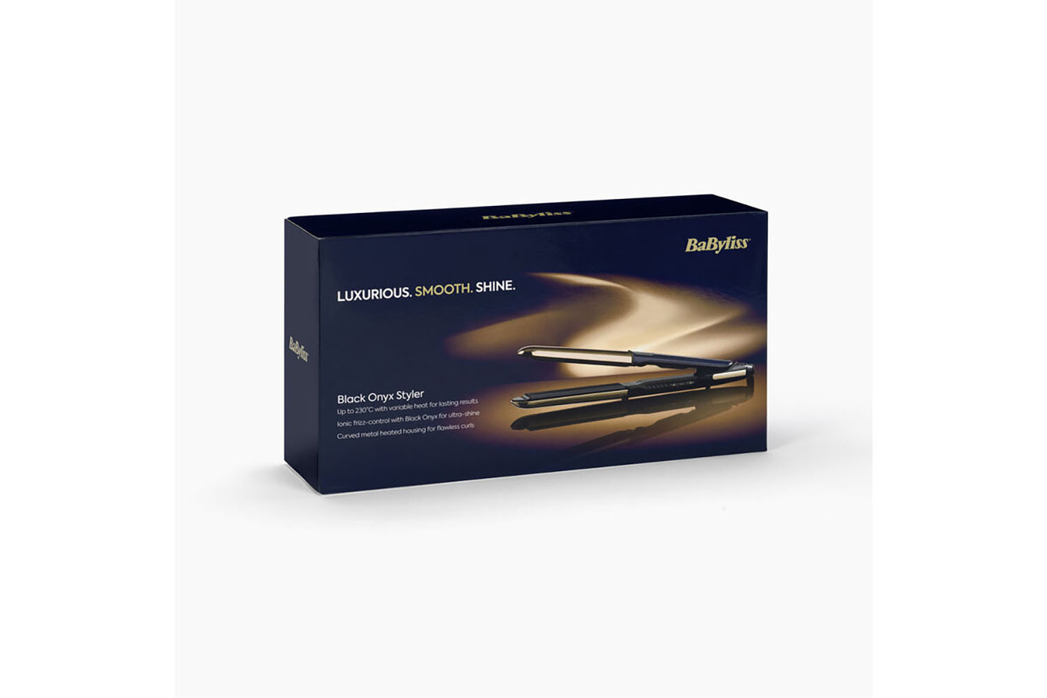 BaByliss luxurious Black Onyx Styler has a fast-response Advanced Ceramics heating system to maintain your chosen styling heat on every section for a smooth finish that lasts all day.