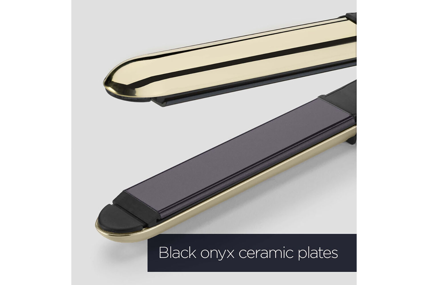 Longer-length ceramic plates infused with smooth black onyx that glide through the hair for effortless styling.