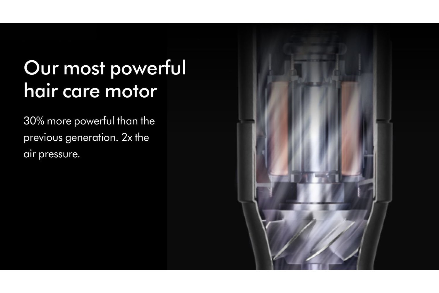 30% more powerful than the previous generation. 2x the air pressure. Providing the power needed for better curling, faster drying and straighter styles[1].