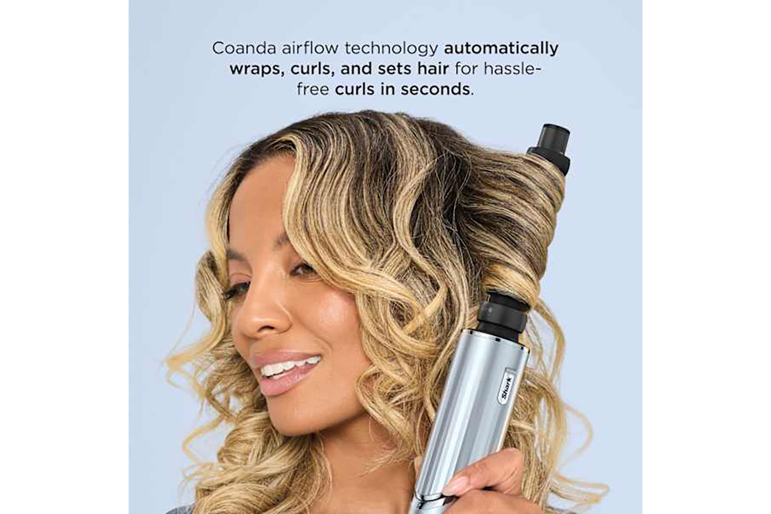 Change the way you curl. Coanda Technology wraps, curls and sets automatically, using air power to wrap hair around the barrel. Watch the magic happen as you place your hair near the barrel, creating hassle-free curls in seconds. With two curler attachments, curl your locks in both directions for a flattering, face-framing finish. Perfect for creating tight curls, fringe and shorter hair styles. Best for straight, wavy, curly & coily hair.