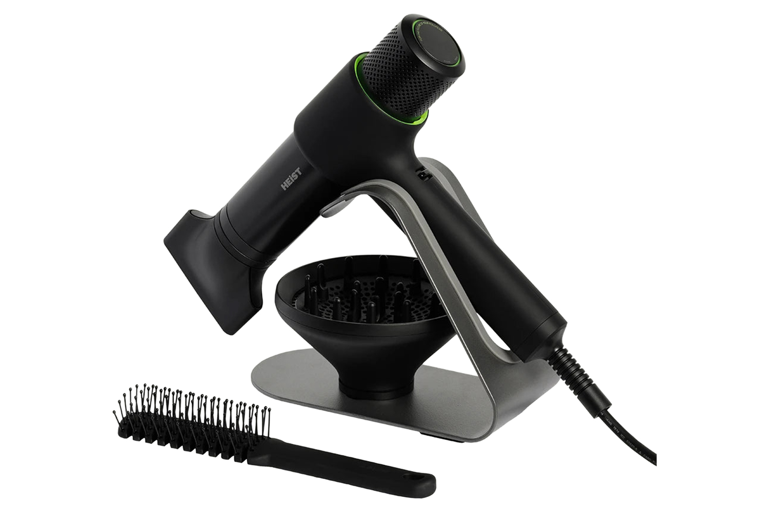 This metal dryer stand is specially designed for the Heist 3.0 dryer. Made with durable metal, it securely holds the hair dryer. Perfect for use in salons or at home, this stand is great for showing off your dryer and offers convenient storage.