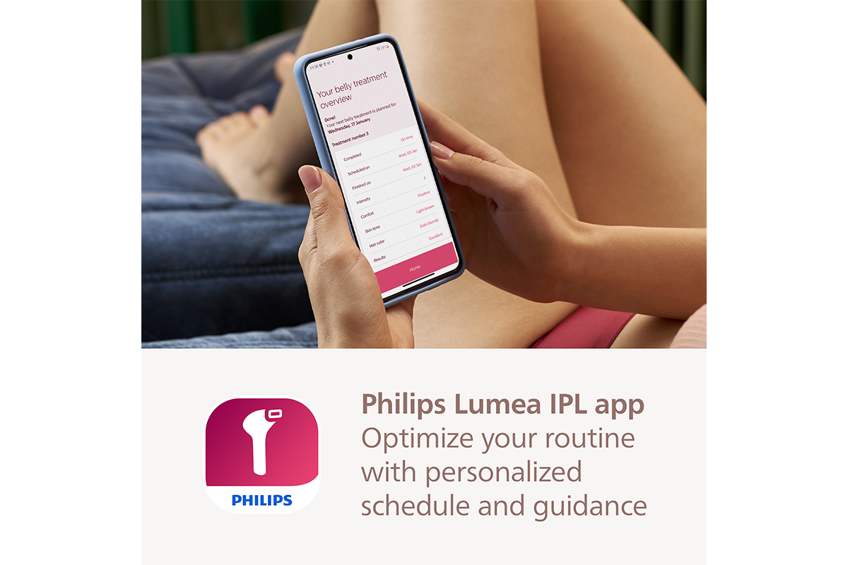 The Lumea App is free to download and offers a unique and personalised IPL experience – just for you. It is your very own personal coach to ensure you are getting the most out of your Lumea and using it in the correct way to achieve long-lasting results. The App helps you create your personalised treatment schedule per body area, with tips and advice during each treatment. All you need to do is check the app regularly to make sure you are up to date with any notifications or reminders.