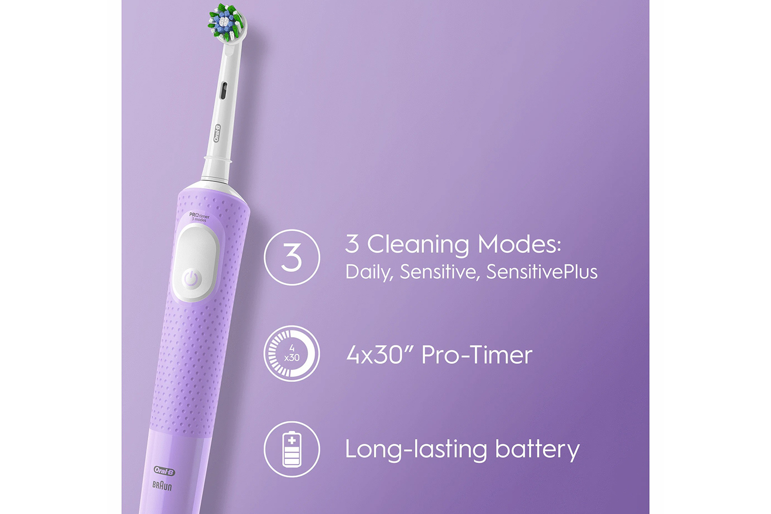 The oral-B vitality pro electric rechargeable toothbrush provides a clinically proven superior clean vs. A regular manual toothbrush. The toothbrush comes with 3 brushing modes: daily clean, sensitive and sensitive plus mode for an amazingly gentle experience. An in-handle timer helps you brush for a dentists-recommended 2 minutes.