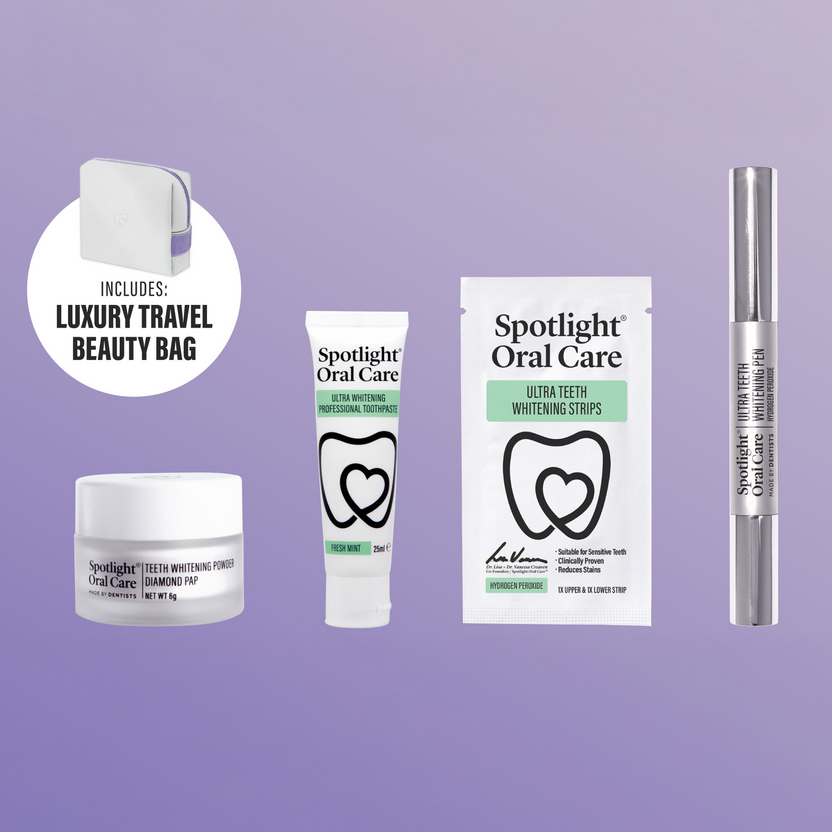 Experience a premium oral care routine with sportlight hero collection to whiten teeth safely at home and on the go, complete with a luxury travel beauty bag. Including oral care best-selling whitening products, developed by dentists, in travel-friendly sizes, these are ideal for you if looking to top up on your favourites and treat yourself or gift to someone who makes you smile.