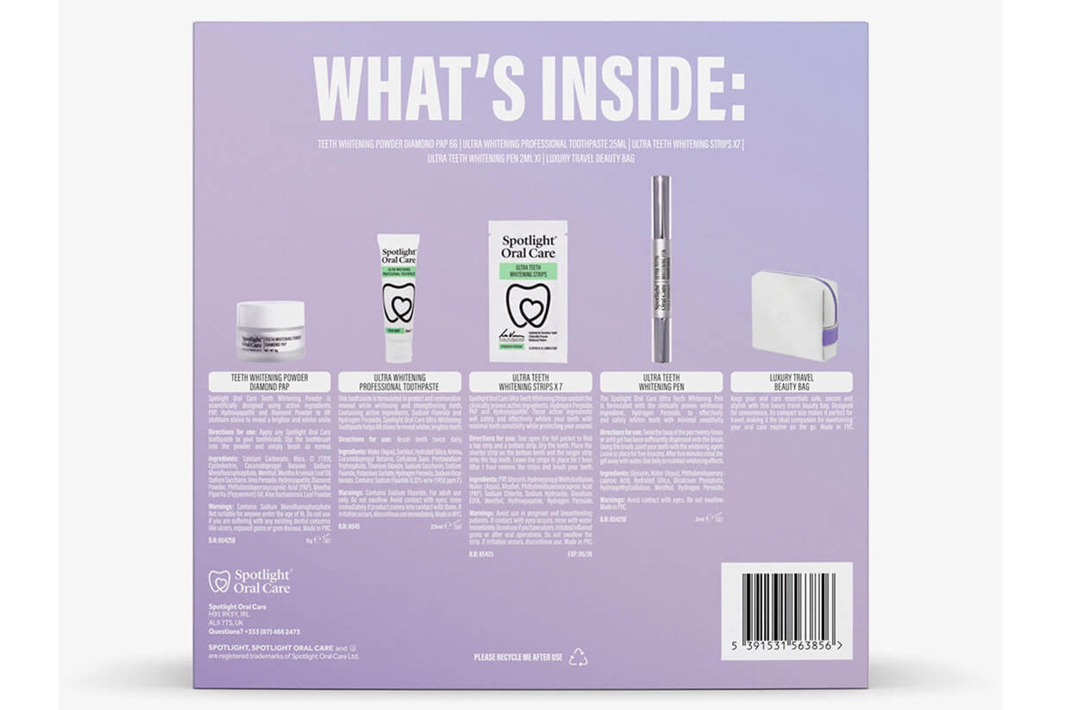 Warnings: Contains Sodium Monofluorophosphate. Not suitable for anyone under the age of 16. Do not use if you are suffering from any existing dental concerns like ulcers, exposed gums or gum disease.