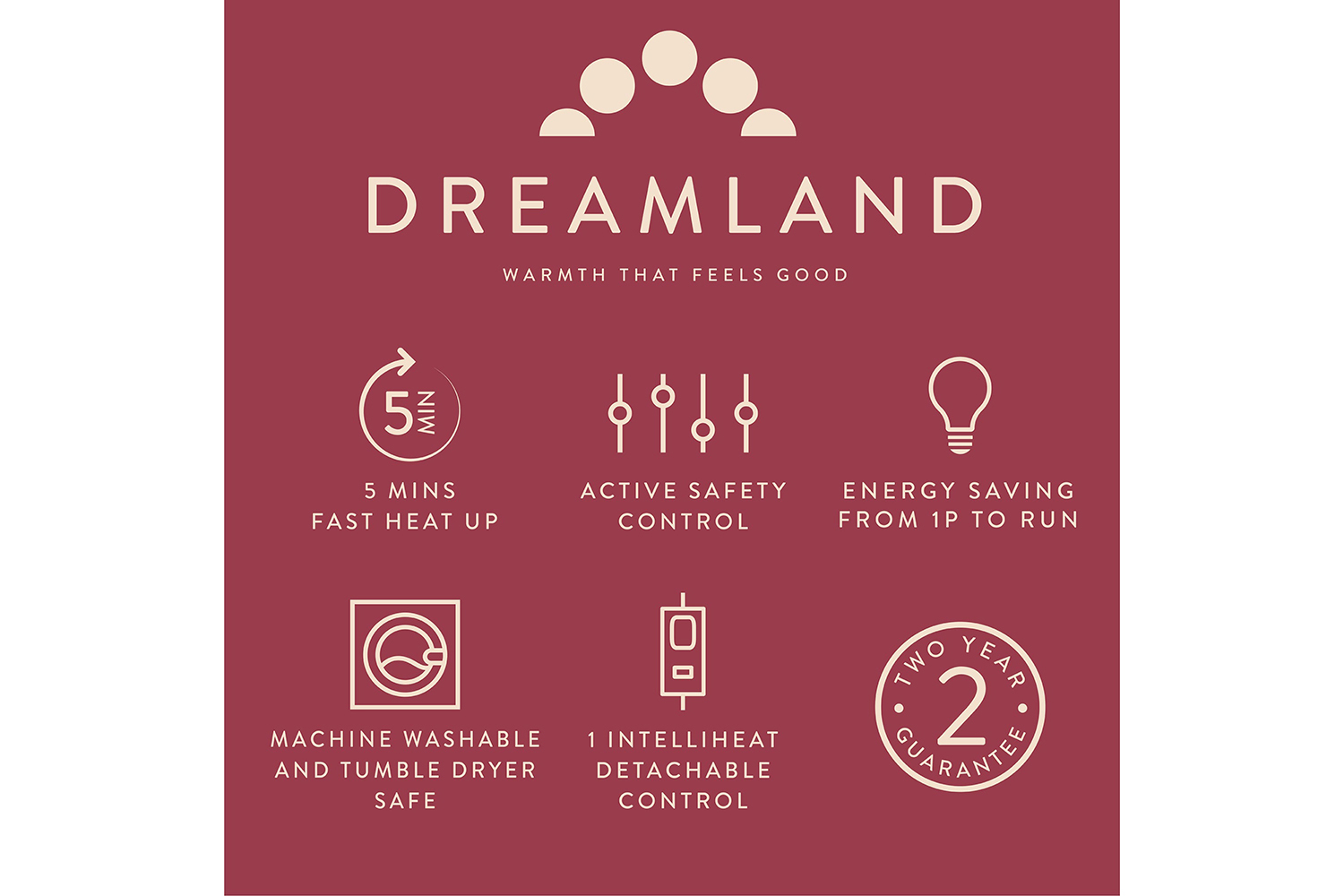 Warm up in just 5 minutes with Dreamland fast heating technology.