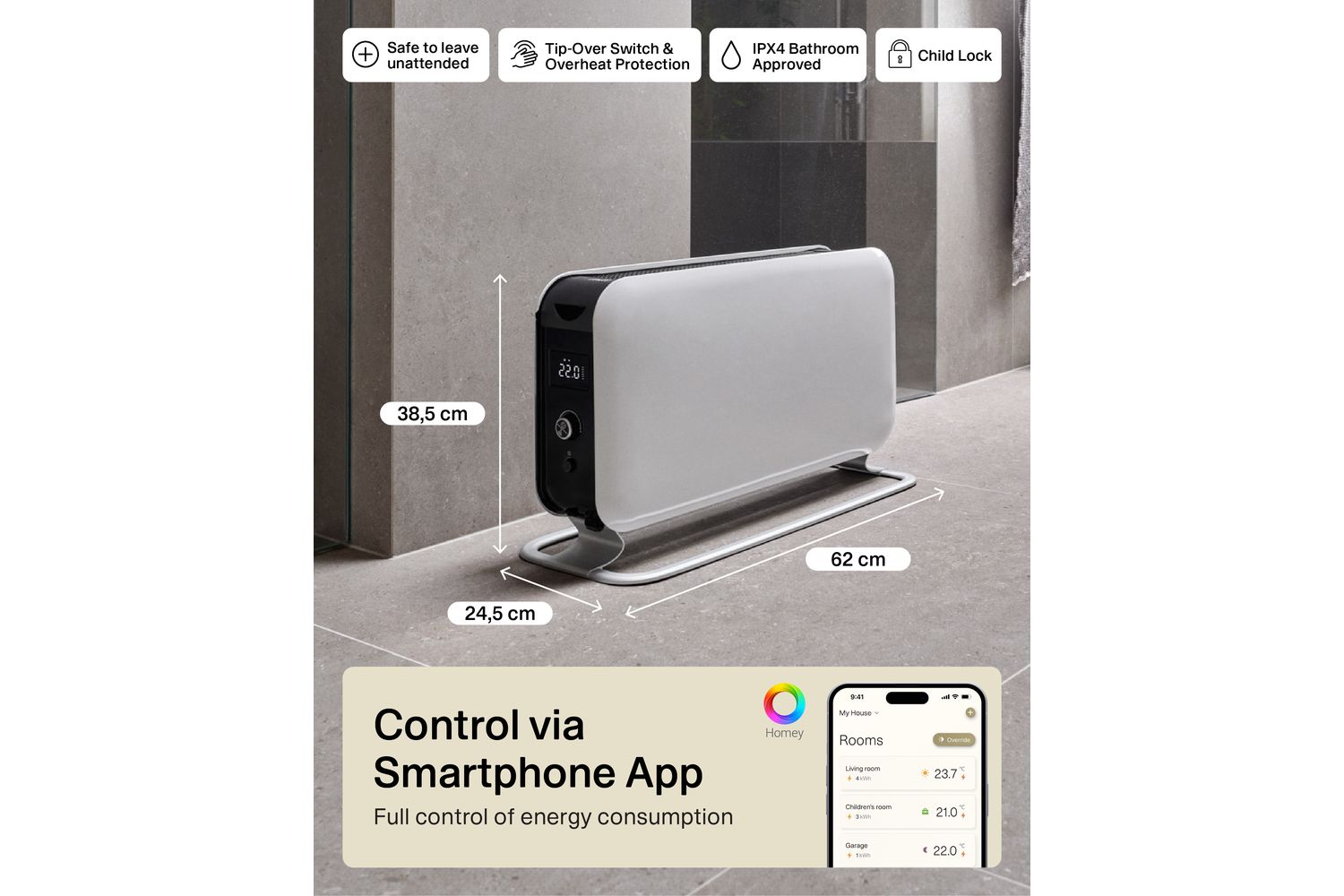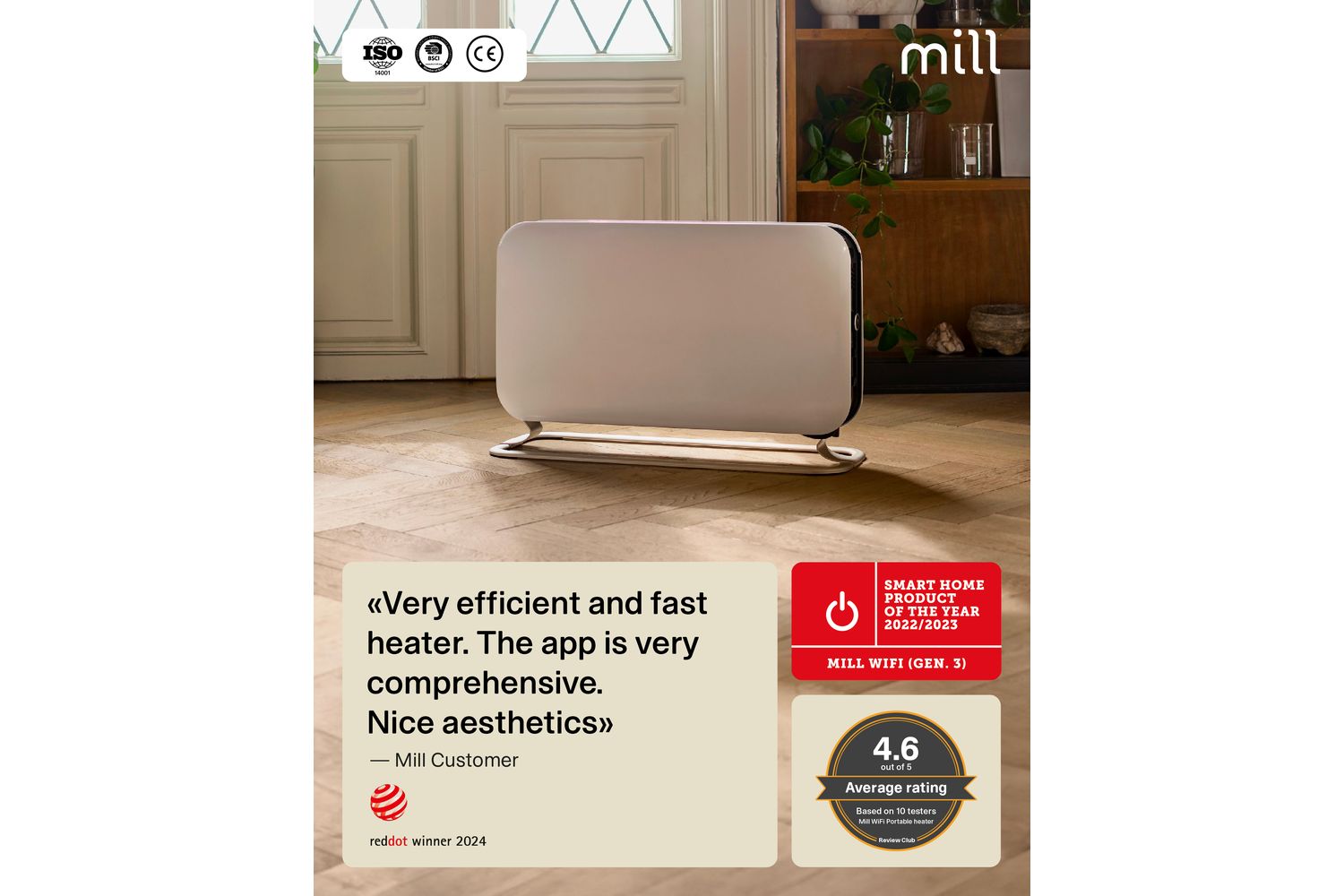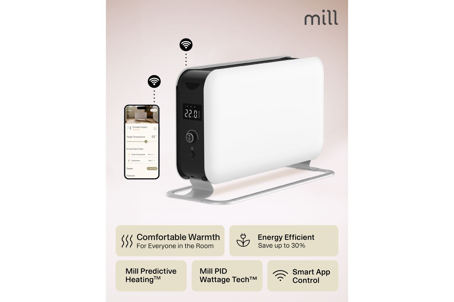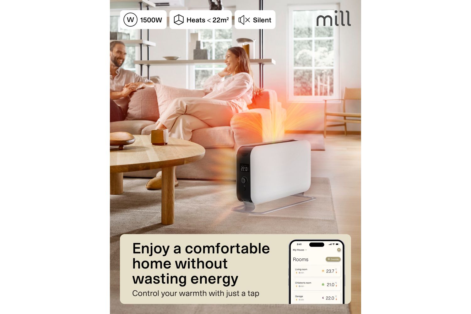 Take charge of your comfort with the intuitive Mill app, allowing you to manage temperature, set schedules, and monitor energy usage from anywhere. The heater’s WiFi connectivity and compatibility with Homey and Tibber smart home systems make it a perfect fit for tech-savvy households. Thanks to Mill PID Wattage Tech and Mill Predictive Heating, you benefit from adaptive, AI-powered temperature control that learns your routines and helps you save up to 30% on energy bills compared to traditional heaters. The eco mode and wattage cap further enhance efficiency, making this heater an eco-friendly choice for Irish families.