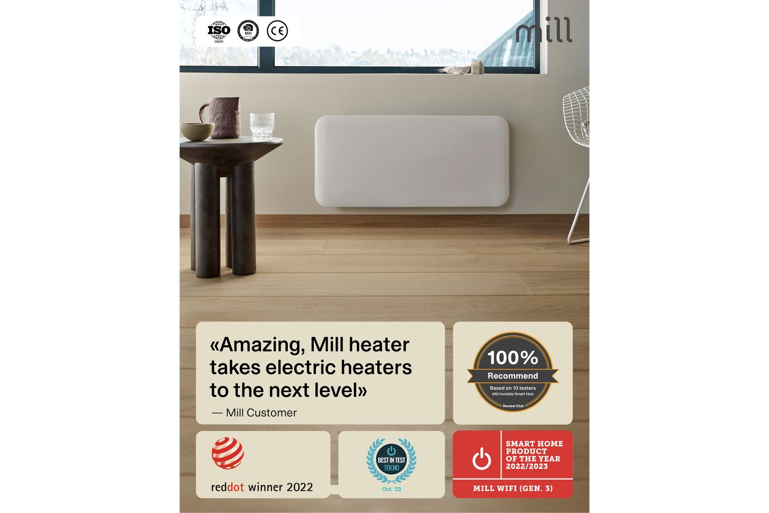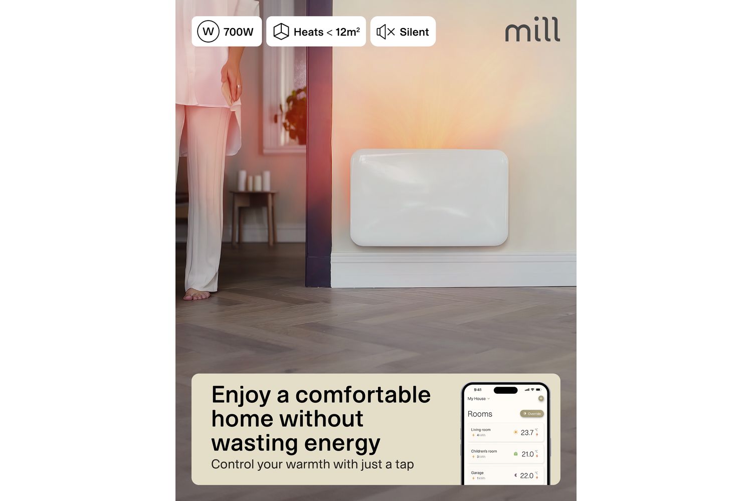 Safety is paramount, with features like overheat protection, a child safety lock, and an IPX4 rating for bathroom use. The open window detection function automatically pauses heating when a sudden temperature drop is detected, helping you save energy and reduce costs. With Mill PID Wattage Tech and Mill Predictive Heating, the heater adapts to your home’s needs, maintaining a stable temperature and minimising energy waste—potentially saving up to 30% compared to traditional heaters.