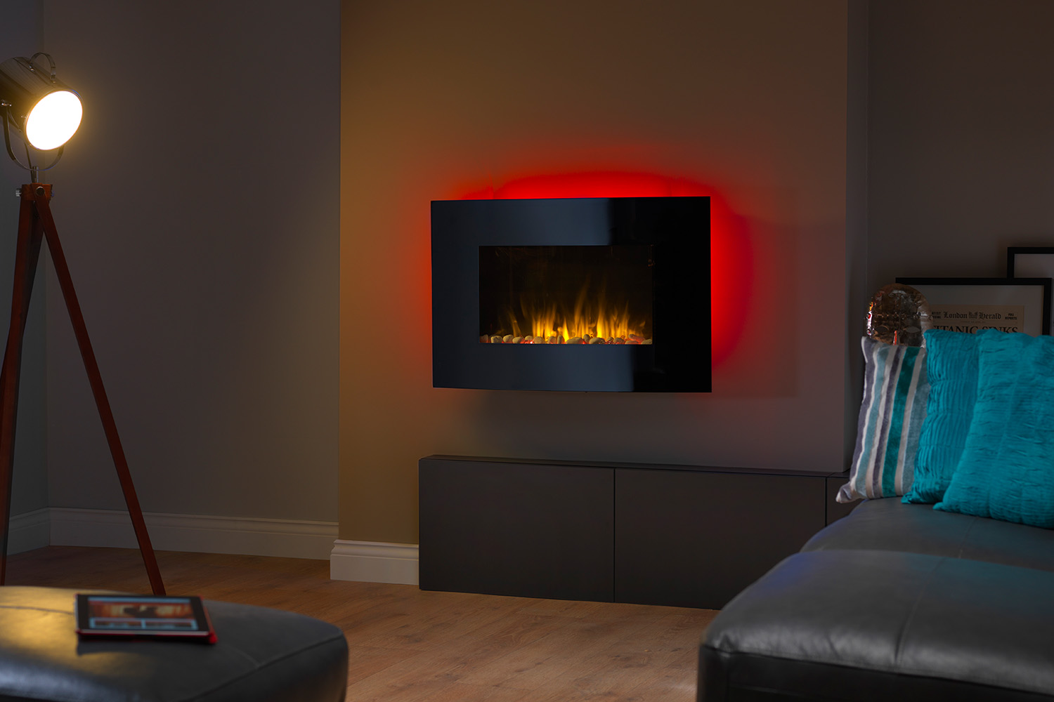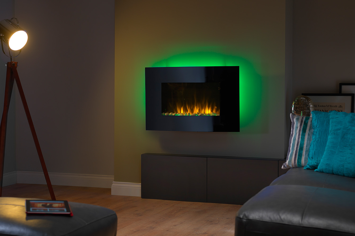 What a fab bit of technology set the scene my Artesia arrives i mount it on the wall with very little bother, its getting stormier outside my wife gets home from work, darkness sets in weather gets worse so we settle down on the sofa i hit the remote on our new wall mounted Artesia fire flames leap across the face of it. Our german shepherd arrives and stretches out in front of the fire, good job its wall mounted.lovely background colours to choose from and the heat is fantastic from it. We snuggle up enjoying our tostie room and new fireplace as it lashes down outside.