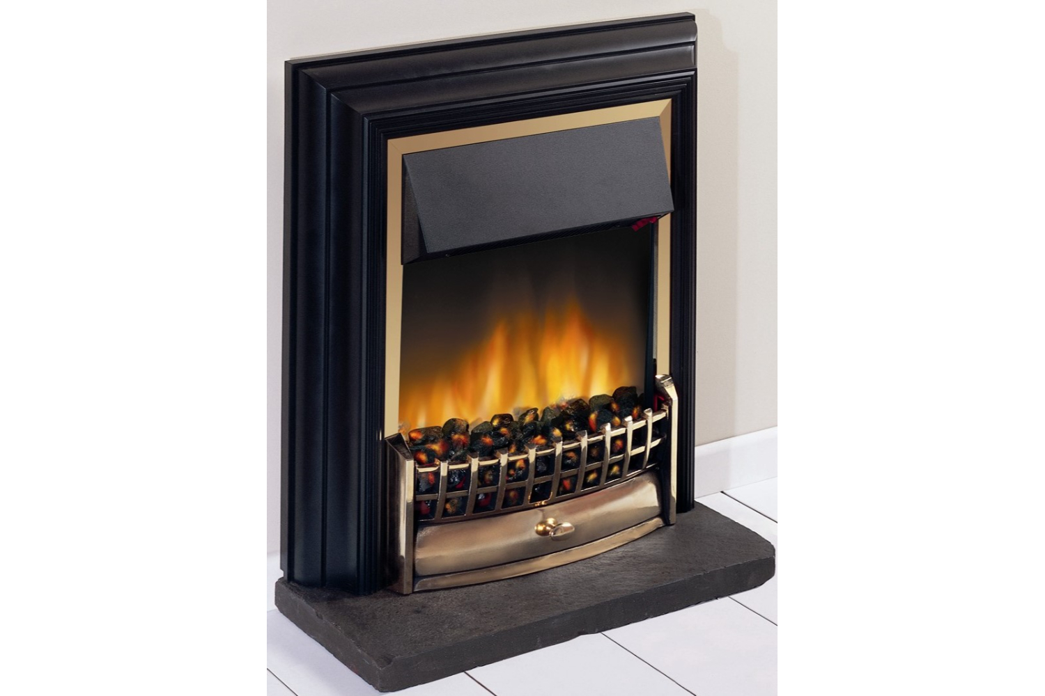 Finished in a traditional black and brass-effect finish and featuring two heat settings and a real coal fuel bed, the cheriton’s optiflame flame effect can be used independently of heat, providing a beautiful focal point in your living room throughout the year.