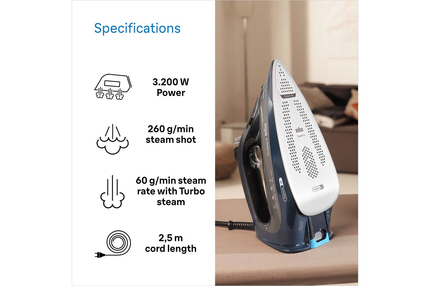 Braun 3200W TexStyle 9 Steam Iron | SI9682DB | Blue