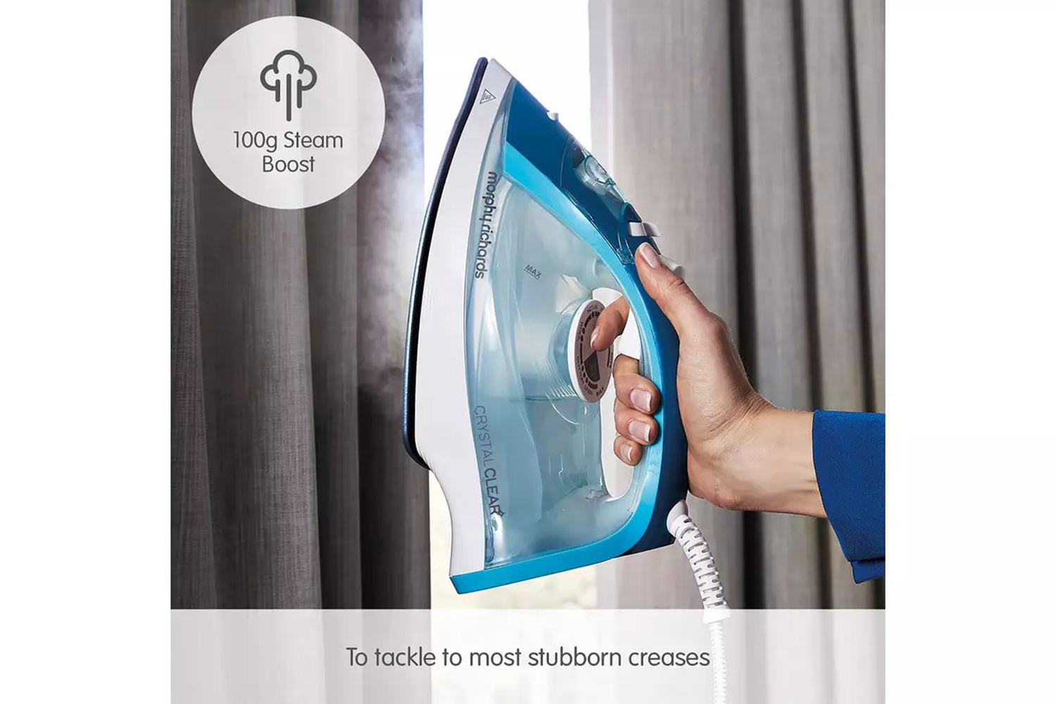 With the touch of a button you can boost the steam to 100g, so that you can get through even the toughest creases.