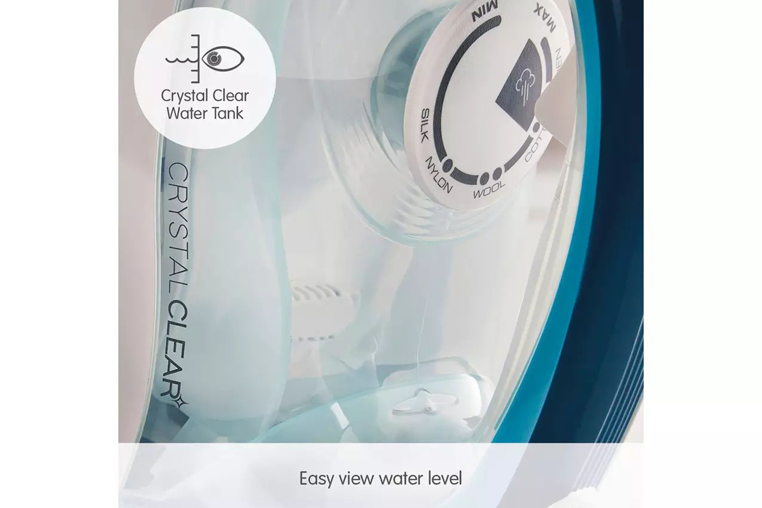 Our range of Crystal Clear irons have easy view water tanks, to help you to avoid running out when ironing, or the tank overflowing when you fill it up.