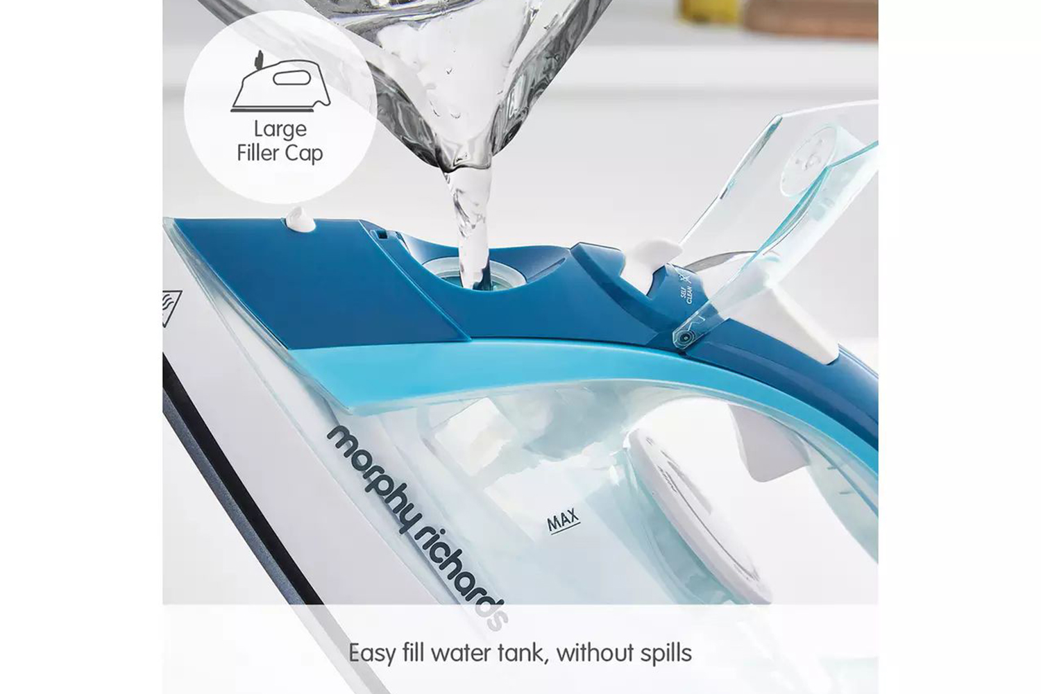 The large filler cap provides easier access to fill up than standard irons, meaning less chance of spillage.