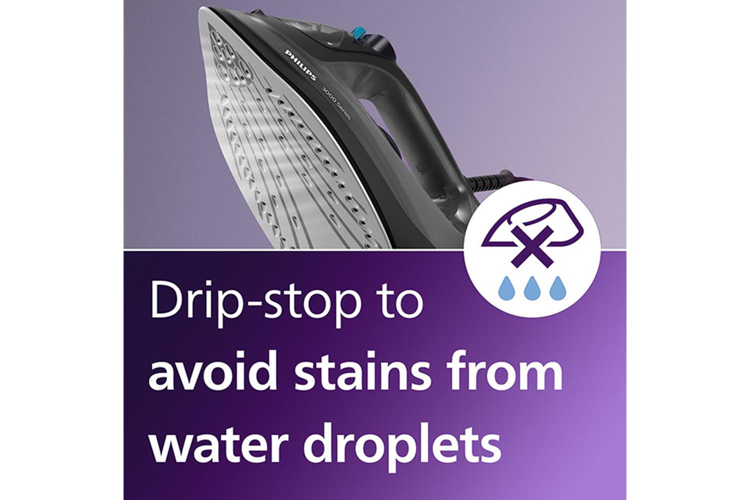 Featuring a sleek ceramic soleplate, the Philips 2600w Steam Iron is a joy to maneuver as it glides over fabrics smoothly without sticking or causing damage. This iron is built to have the perfect weight, granting you maximum comfort and reducing the strain associated with ironing. Keeps you confident even when dealing with delicate fabrics thanks to the innovative drip-stop system, which prevents the molesting of dripping water on your finery and allows you to iron at any temperature without worries.