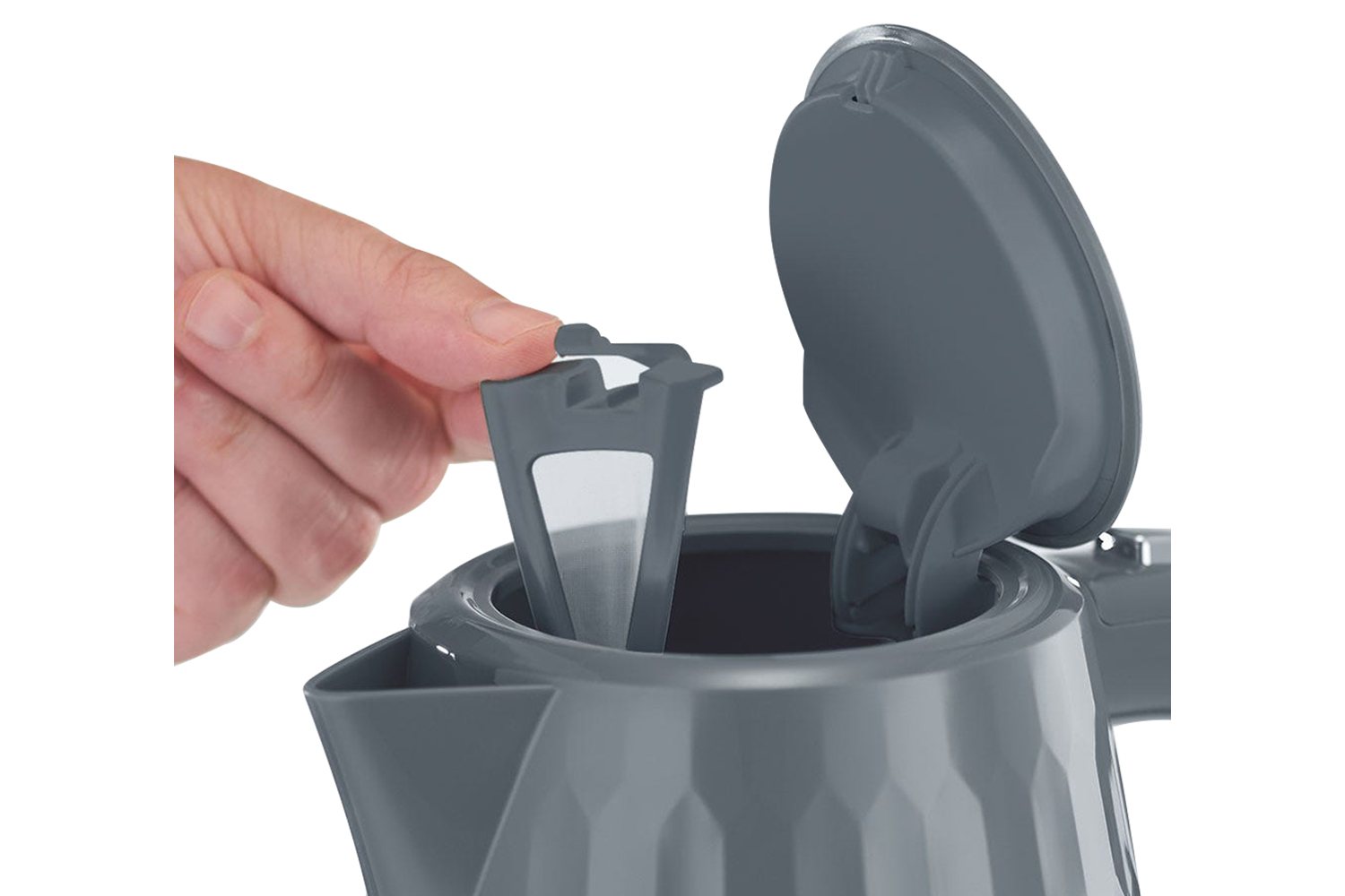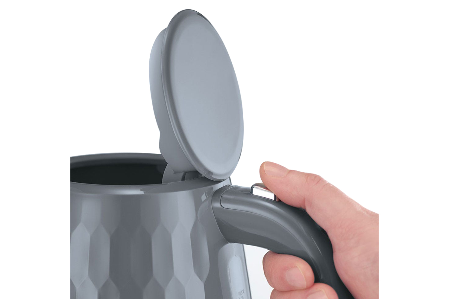 Keep on top of the latest kitchen trends with the Russell Hobbs Honeycomb Kettle in Grey that brings you a Premium Design at an affordable price. Letting you effortlessly transform your kitchen, this Honeycomb-Inspired Design with Stainless Steel Accents makes a real statement on your countertop. Enjoy a Cup in 43 Seconds*, from a Perfect Pour Spout that prevents any splashes and spills – it’s time to enjoy a blissful brew.