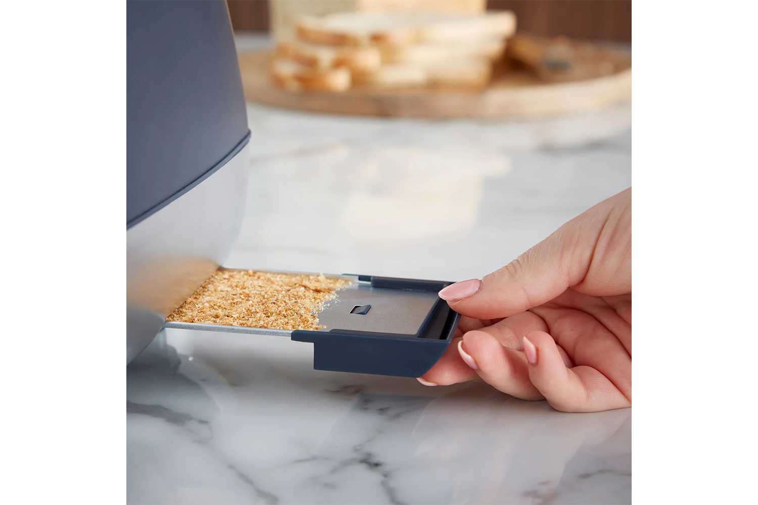 • Removable crumb tray: Quick and effortless clean up as well as tidy kitchen surfaces thanks to the              removable crumb tray