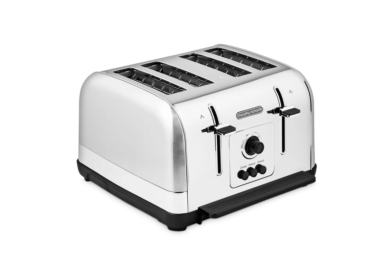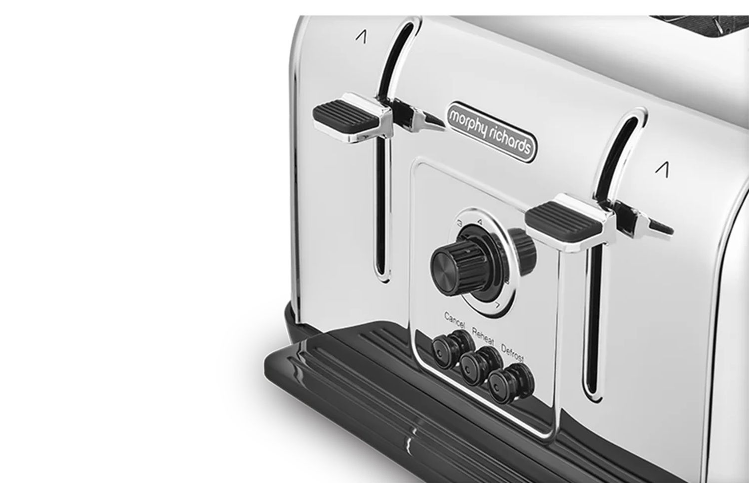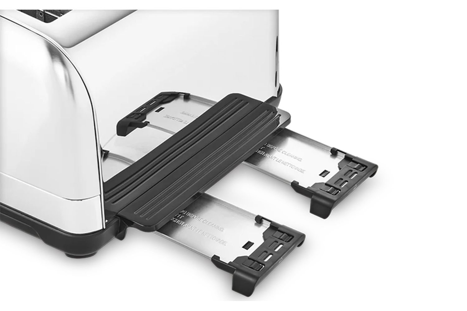 With four slots and variable browning control, you can make toast just the way you like it – from lightly toasted to crunchy perfection! The reheat settings come in handy when you need a quick snack or for bringing your frozen goodies back to life. There's even high lift levers for easy removal of each slice and a cord tidy feature for tidier countertops. Not only is this toaster stylish, but its removable crumb tray stores all those messes so your worktops stay neat and tidy.