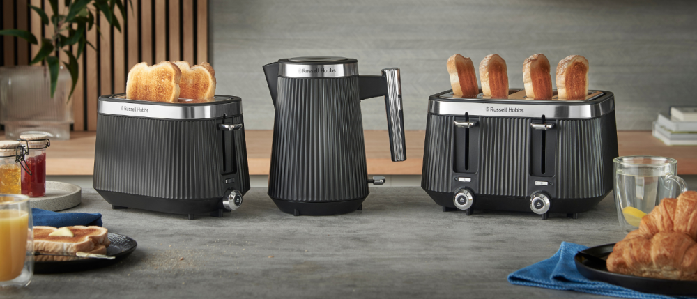 With distinctive stainless-steel accents and an eye-catching matte black fluted design, the Russell Hobbs Bronte 4 Slice Toaster Matte Black is designed to stand out. Check on your slice without stopping the cycle with the Lift and Look feature and raise toast with the help of the high lift feature. The frozen, reheat and cancel functions allow you to create the perfect golden crunch, and the indicator light will glow until the pop.