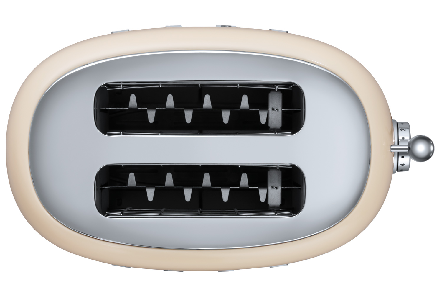 In addition to its excellent performance, the Smeg toaster adds a touch of elegance to my kitchen with its 50's retro style and cream color. It fits in perfectly with my light brown creamy cabinets, and I love how it looks on my kitchen counter.